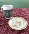 Perfect for making several projects from just two skeins of yarn, or for using up odds and ends, this sweet little mug cozy is great for a gift; or to enjoy around your own mug with your favourite hot beverage! Worked in two colours in the round using stranded stocking stitch and corrugated ribbing, the steek stitches are then cut so that you can finish the mug with a wee buttonband. Directions are included for enlarging the project, or for working without cutting your knitting.