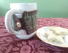 Fits mug measuring 26 cm [10 1/4"] circumference, with the height of the space within the handle measuring 4.5 cm [1 3/4"], but can also be adapted for a larger mug.