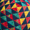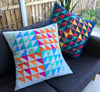 Make this super-sized cushion using a simple machine piecing technique to make up half square triangles in no time at all. You can use four prints as in the blue version, or eight different prints as in the grey. These full colour easy-to-follow instructions will take you through every step.