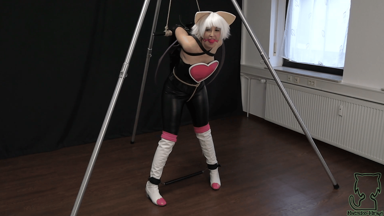 Video includes: Electrical tapegag, duct tapegag, tape bound, hands behind back, hopping, spanking, microfoam tapegag, hogtie, rope bound, suspension, spreaderbar, leather armbinder, c. rope, ballgag, tied to suspension, drooling, blooper, struggling, moaning, gagtalk