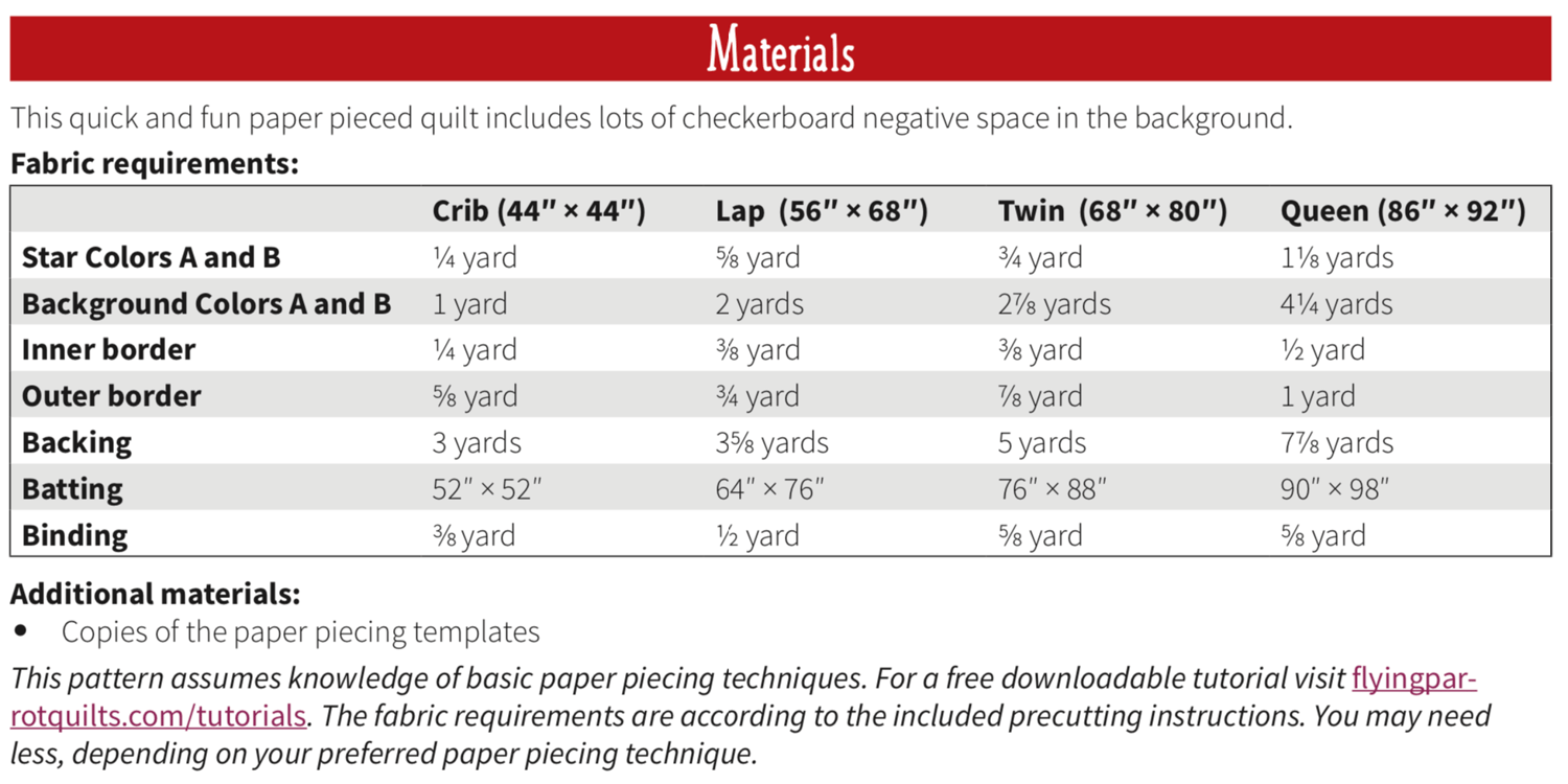 This pattern assumes knowledge of basic paper piecing techniques. For a free downloadable tutorial click here.