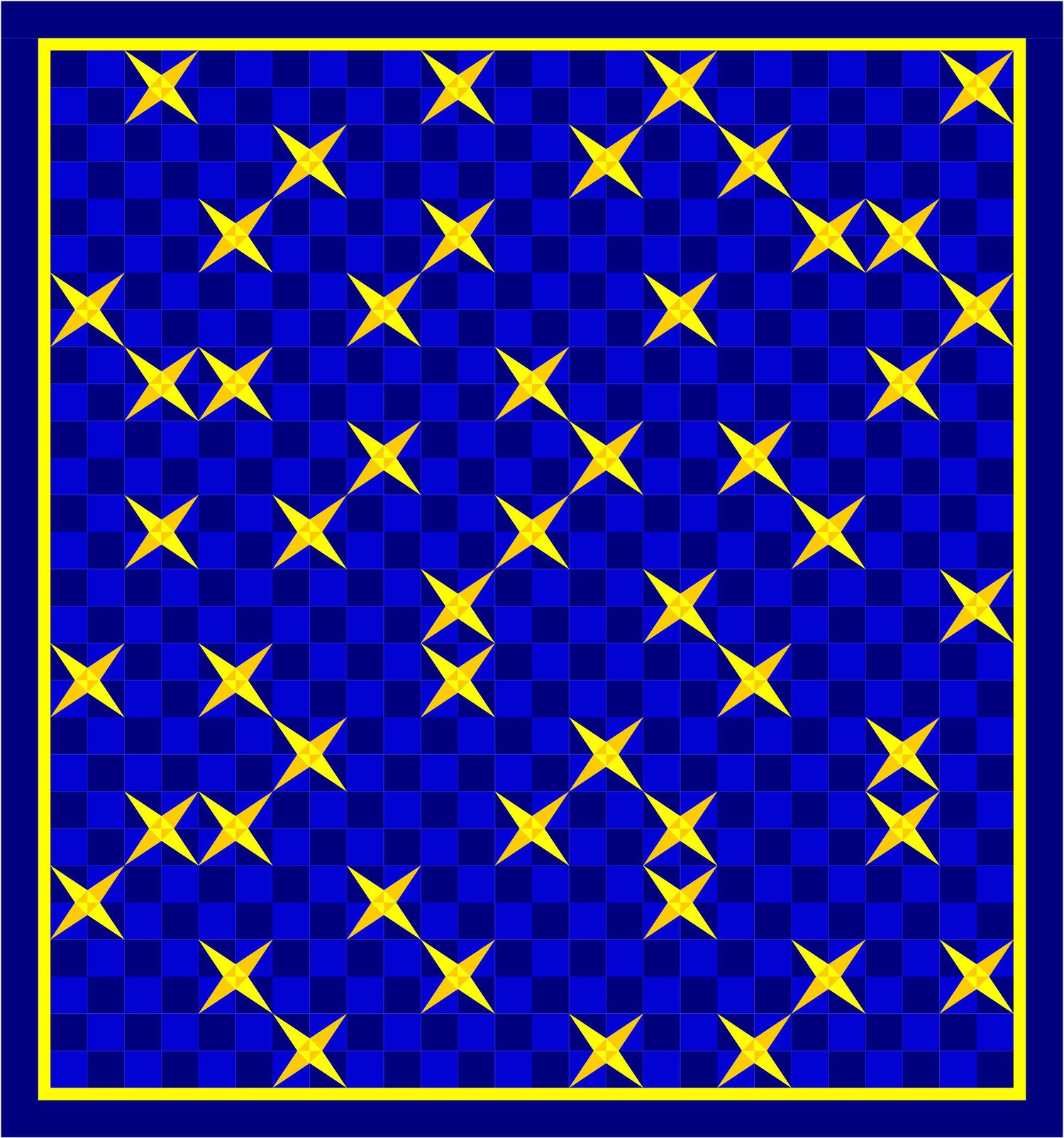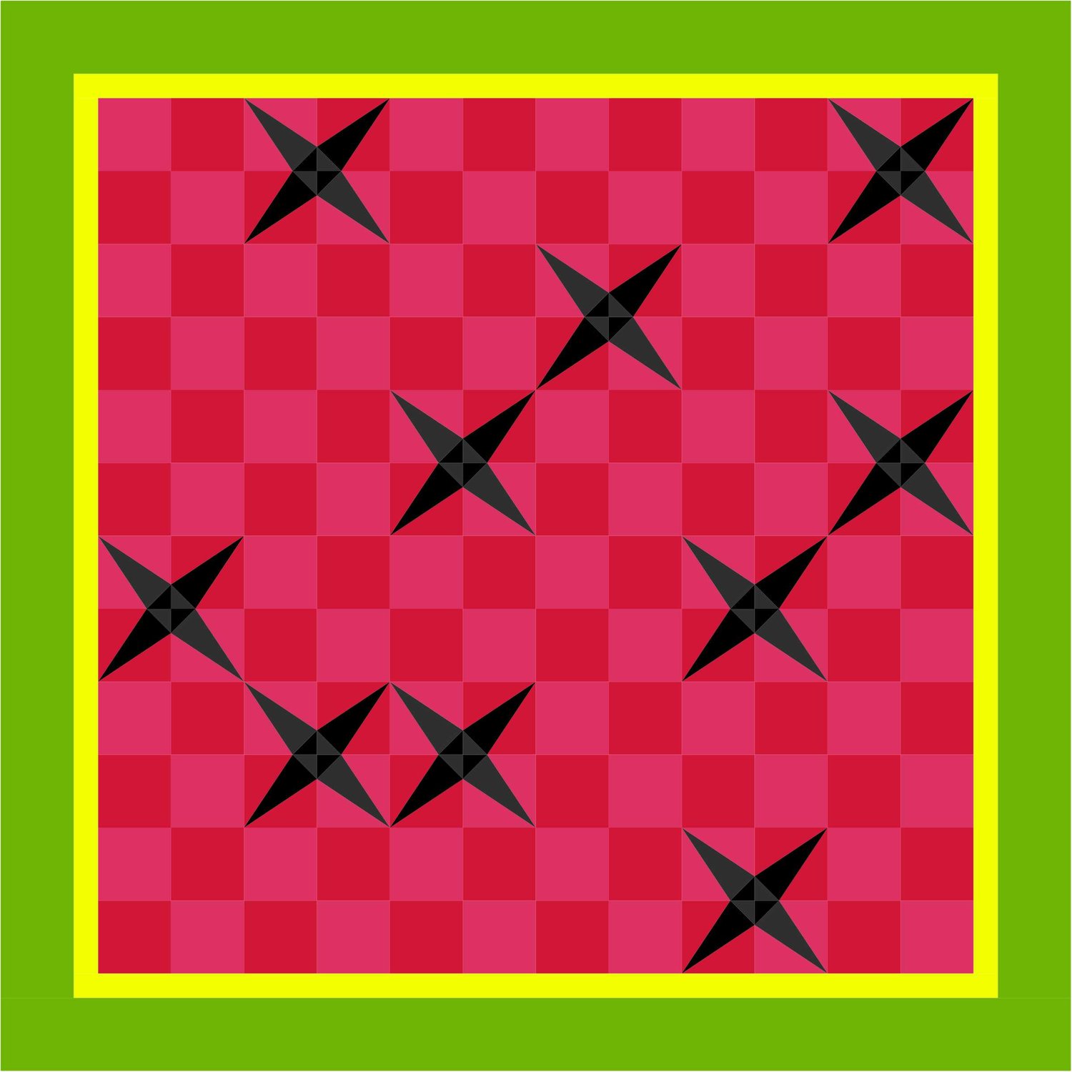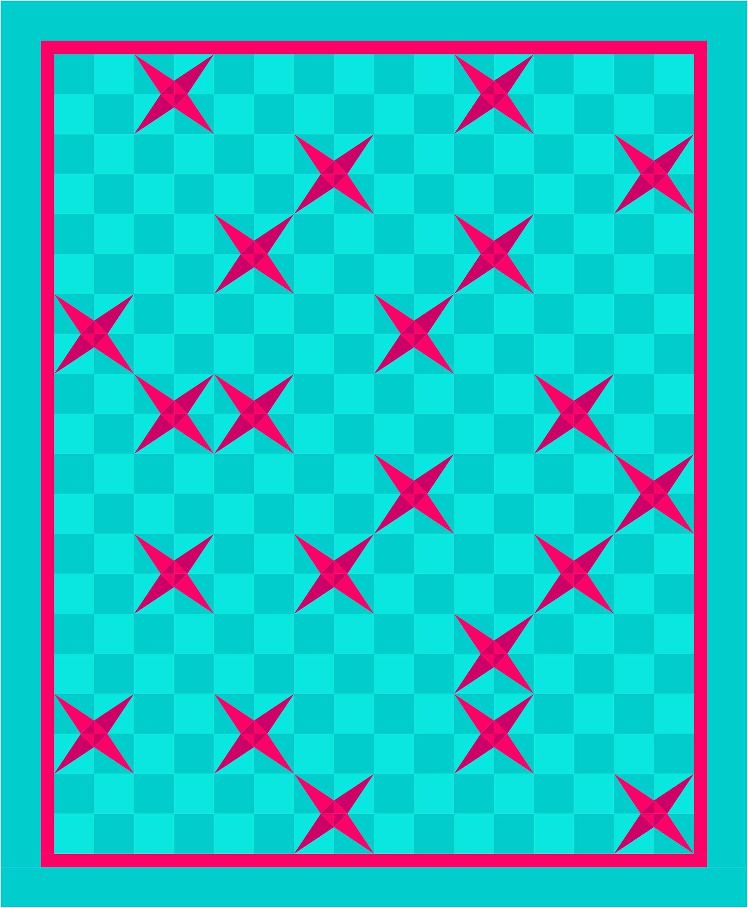 This fun modern quilt uses a few paper pieced star blocks throughout the quilt to make a big impact. The color possibilities are endless. This design example was shown in The Quilter's Negative Space Handbook; now you can get the pattern! Four different quilt sizes are included.