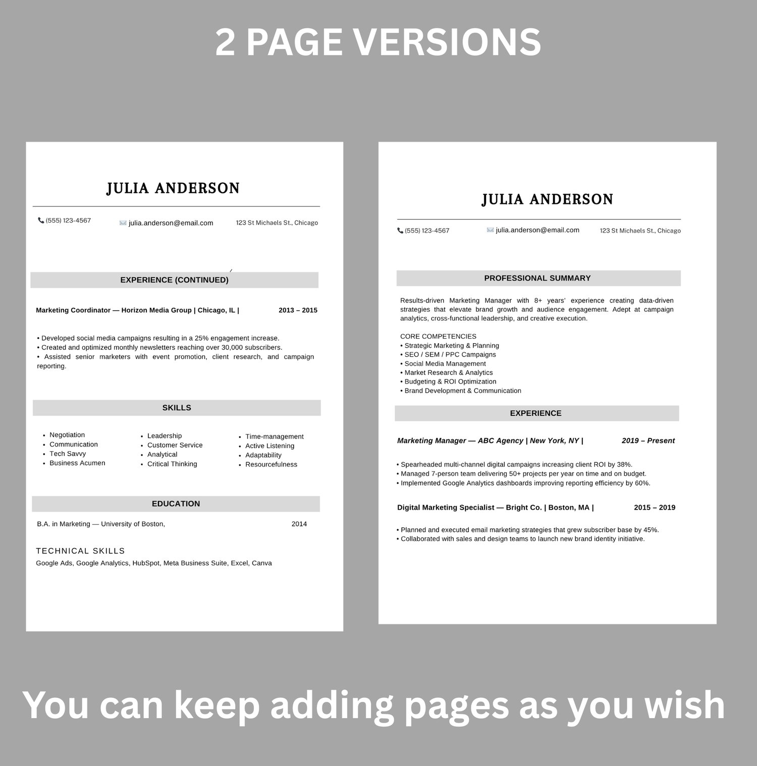 This template works seamlessly in Microsoft Word,docs,pages and Canva, making it simple to customize your personal details, experience, and achievements.