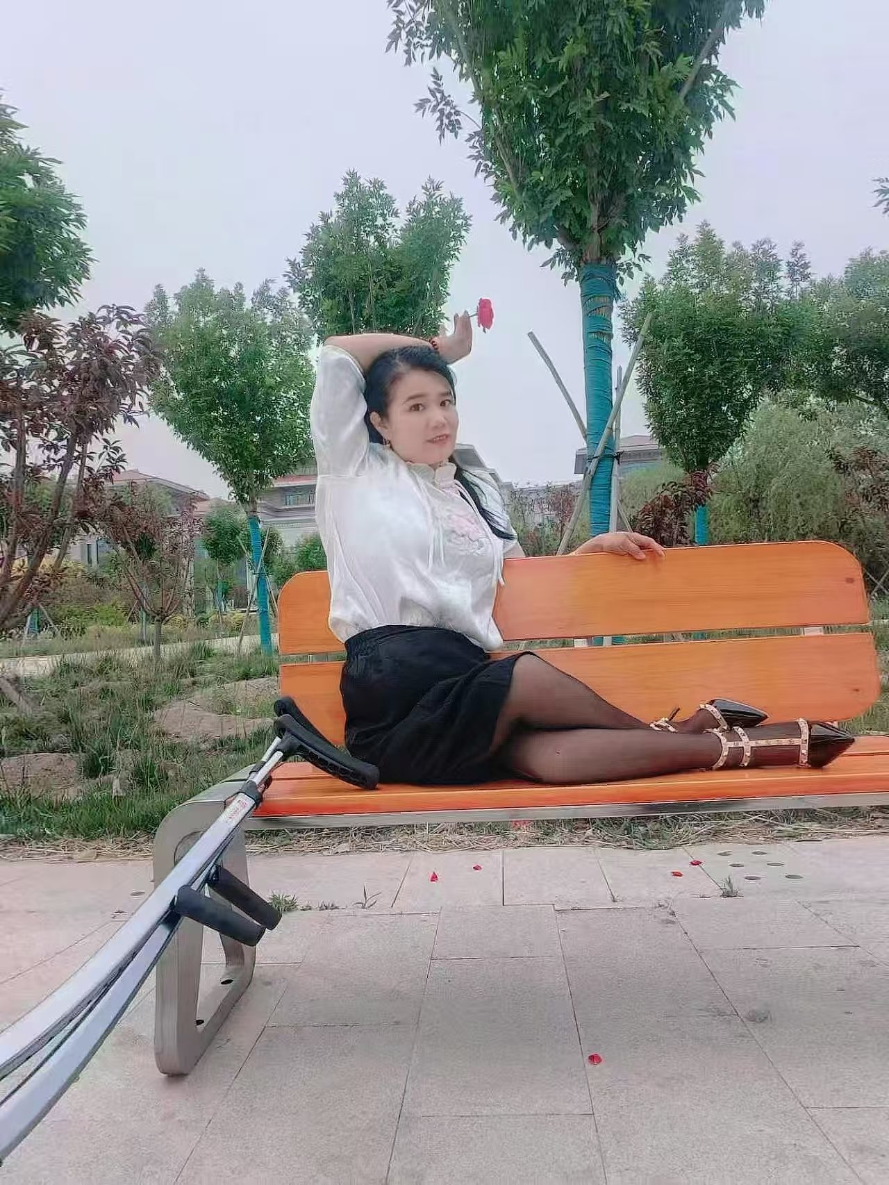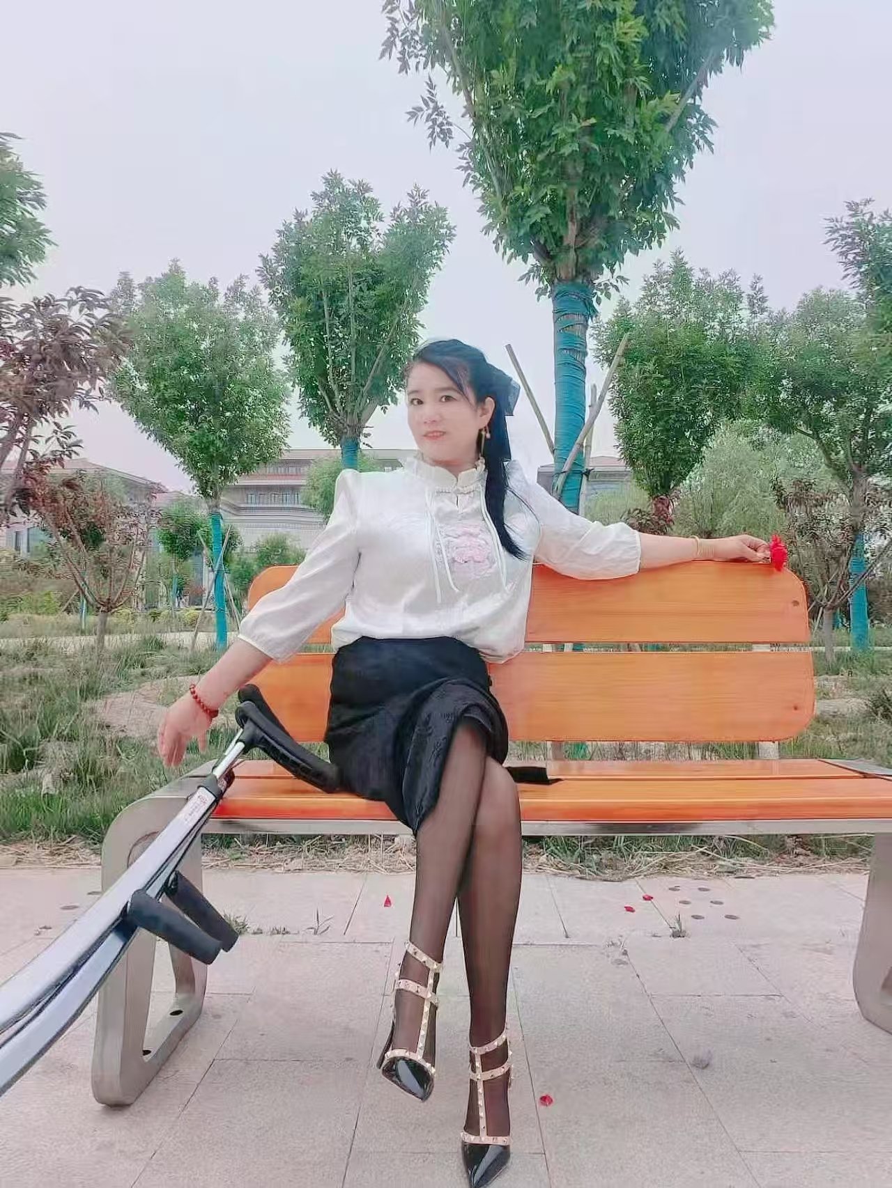She drove her newly modified car to a sparsely populated park to enjoy a quiet moment alone.