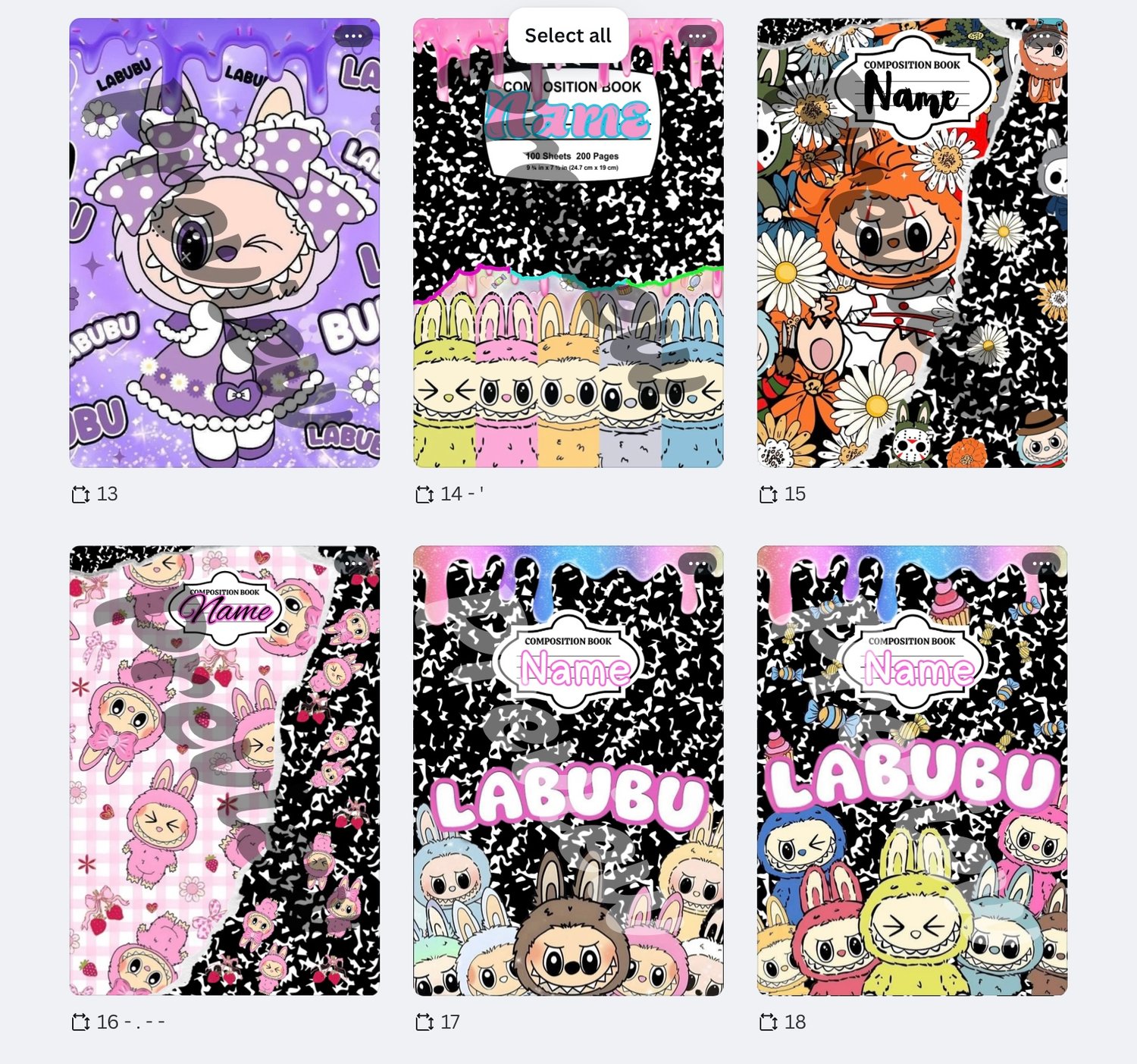 20 Labubu design composition notebook templates ready for download, print, and/or editing in canva. Sized to 6.9x10 in