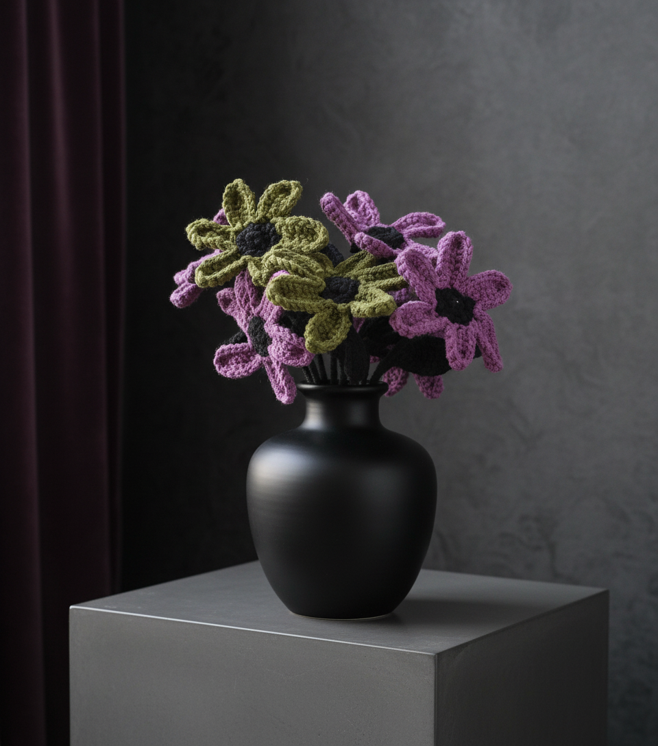Mystic Daisy brings soft charm and a hint of magic to your bouquet. She is bright, gentle, and very easy to make, which makes her perfect for beginners or anyone looking for a relaxing project.