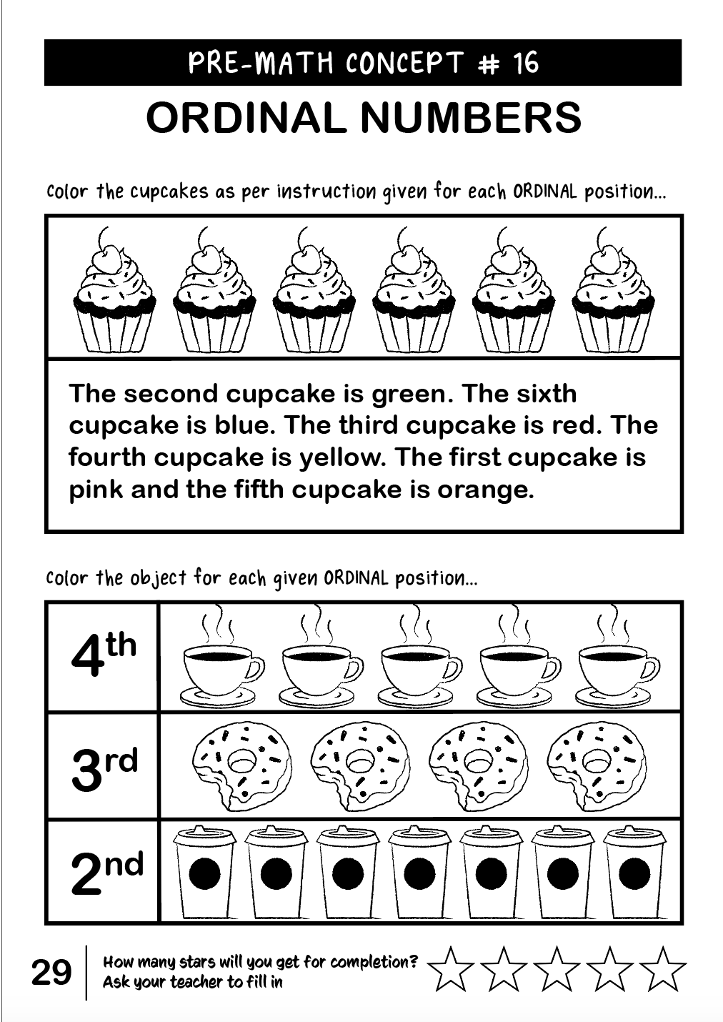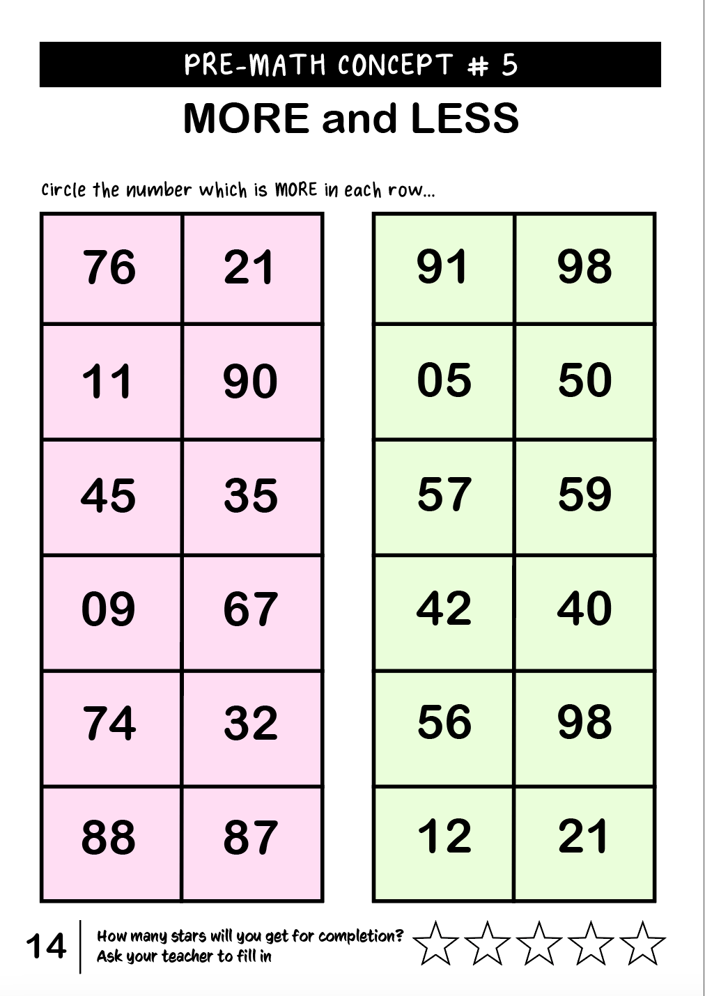 Here are 32 pages of 20 pre-math concepts which will help in developing number sense, spatial awareness, enhancing problem-solving skills, improving logical thinking and at same time enjoying maths with colourful and interesting worksheets.