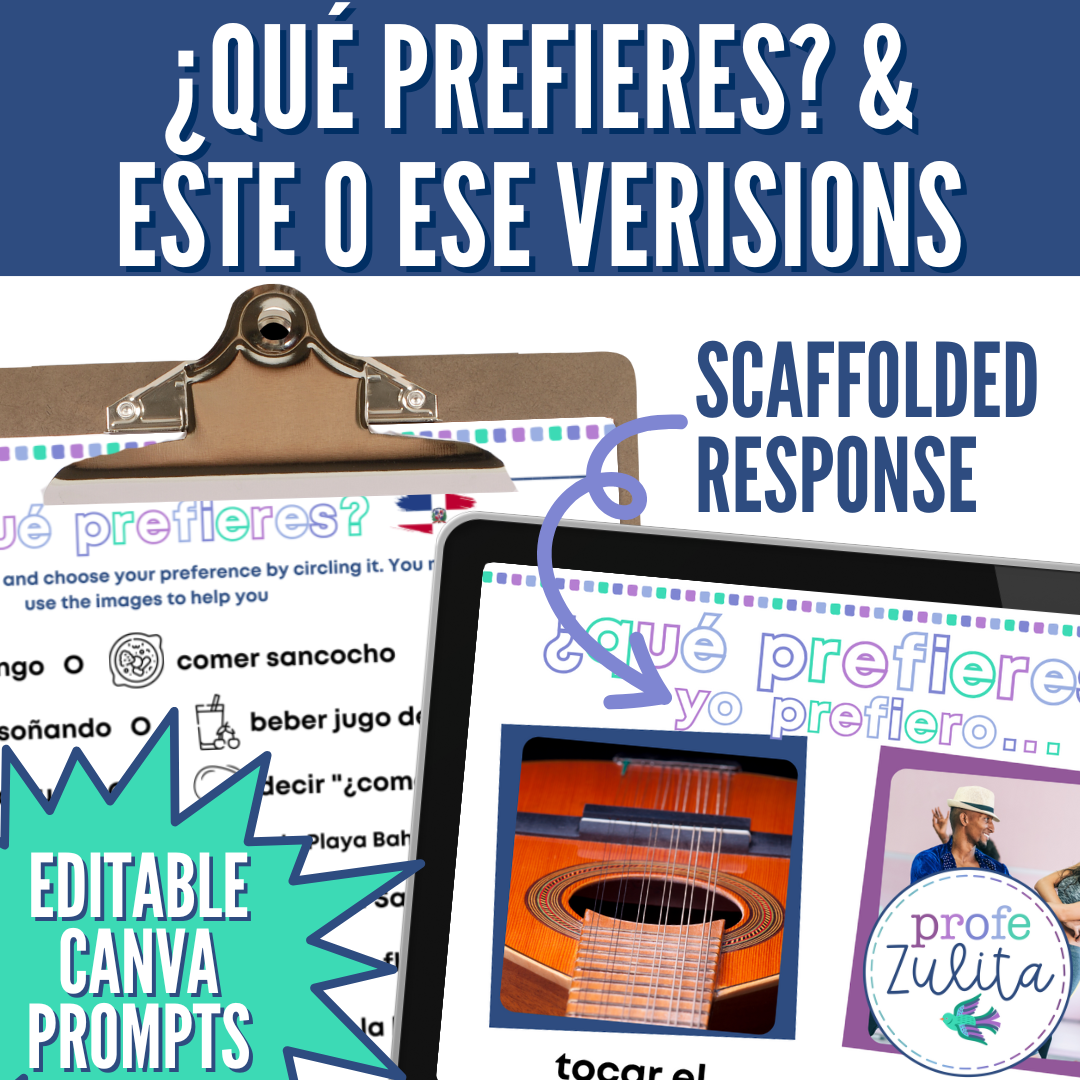 Explore La República Dominicana in your Spanish Classroom with La República Dominicana Culture themed prompts in Spanish with this ¿Qué prefieres? / Este o Ese / This or That Spanish game. This Spanish La República Dominicana Culture Would you Rather game is perfect for Spanish 1 class and beyond!