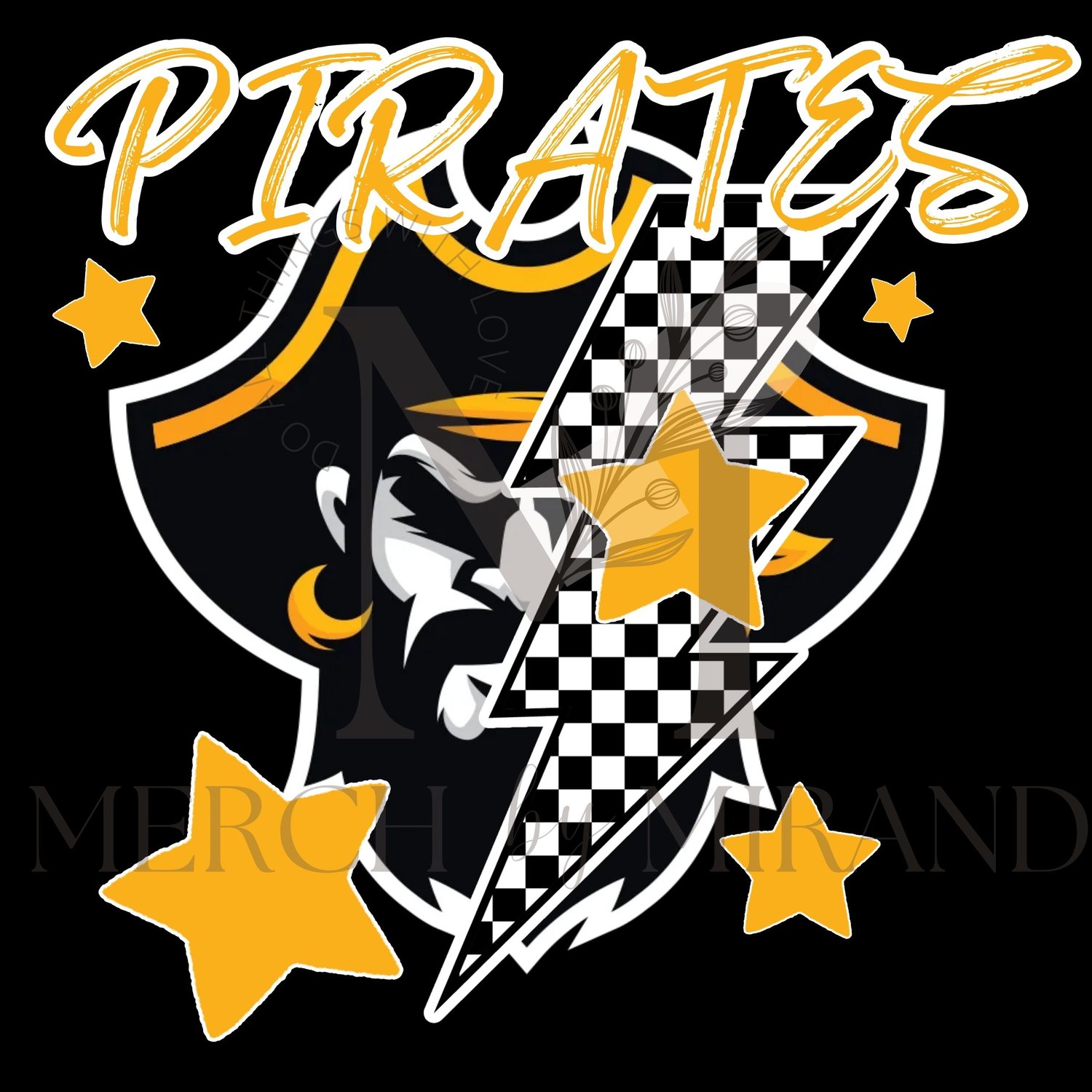 Pirate Mascot Gold | Sublimation Design | Digital Download | School Spirit Shirt PNG | DTF Design | Lightning Bolt-Checkered with Stars - Pirates
