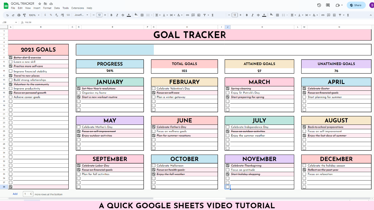 The goal tracker spreadsheet is a powerful tool designed to help you achieve your goals and track your progress over time.