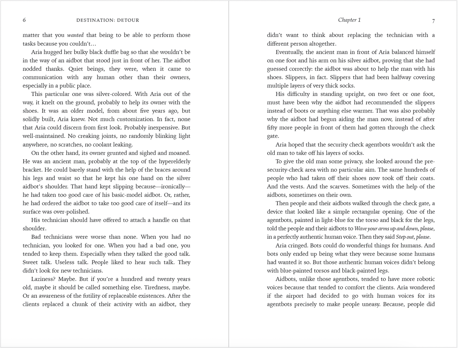 Aria thought she was just helping an elderly man and his malfunctioning aidbot navigate airport security. But Antonius Wang isn’t just any old man—he is the reclusive genius who revolutionized the bot industry. And his “broken” bot isn’t broken at all.