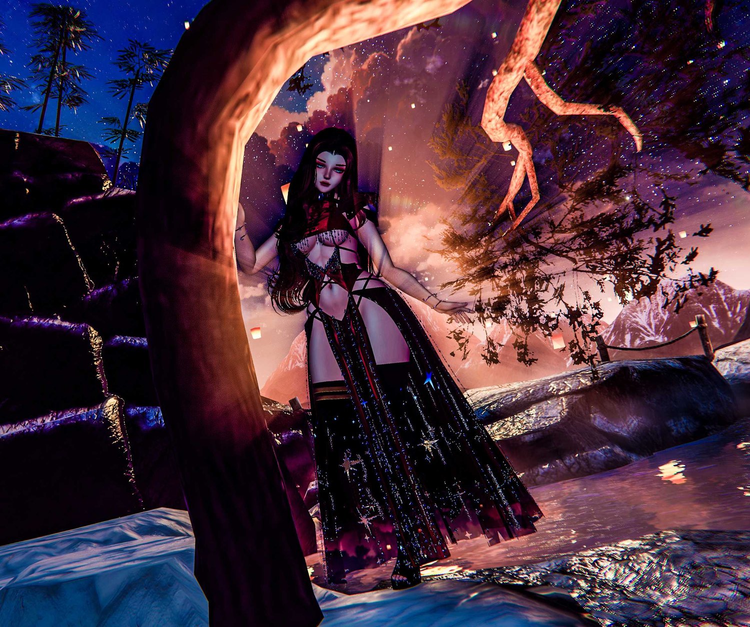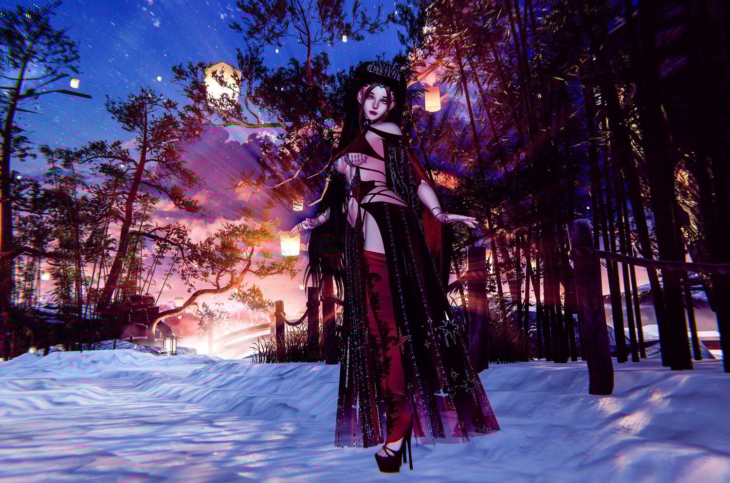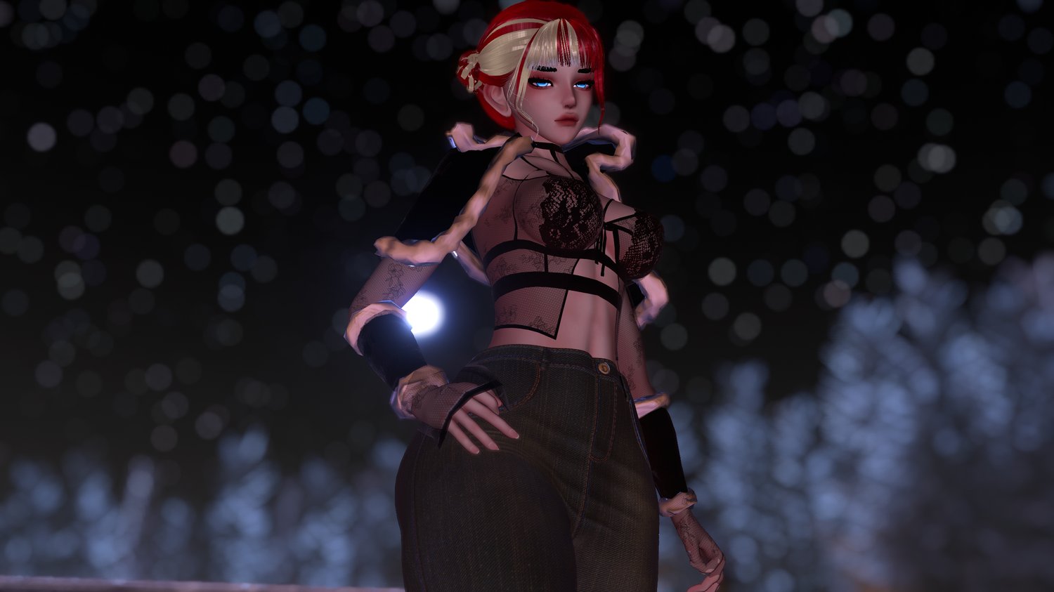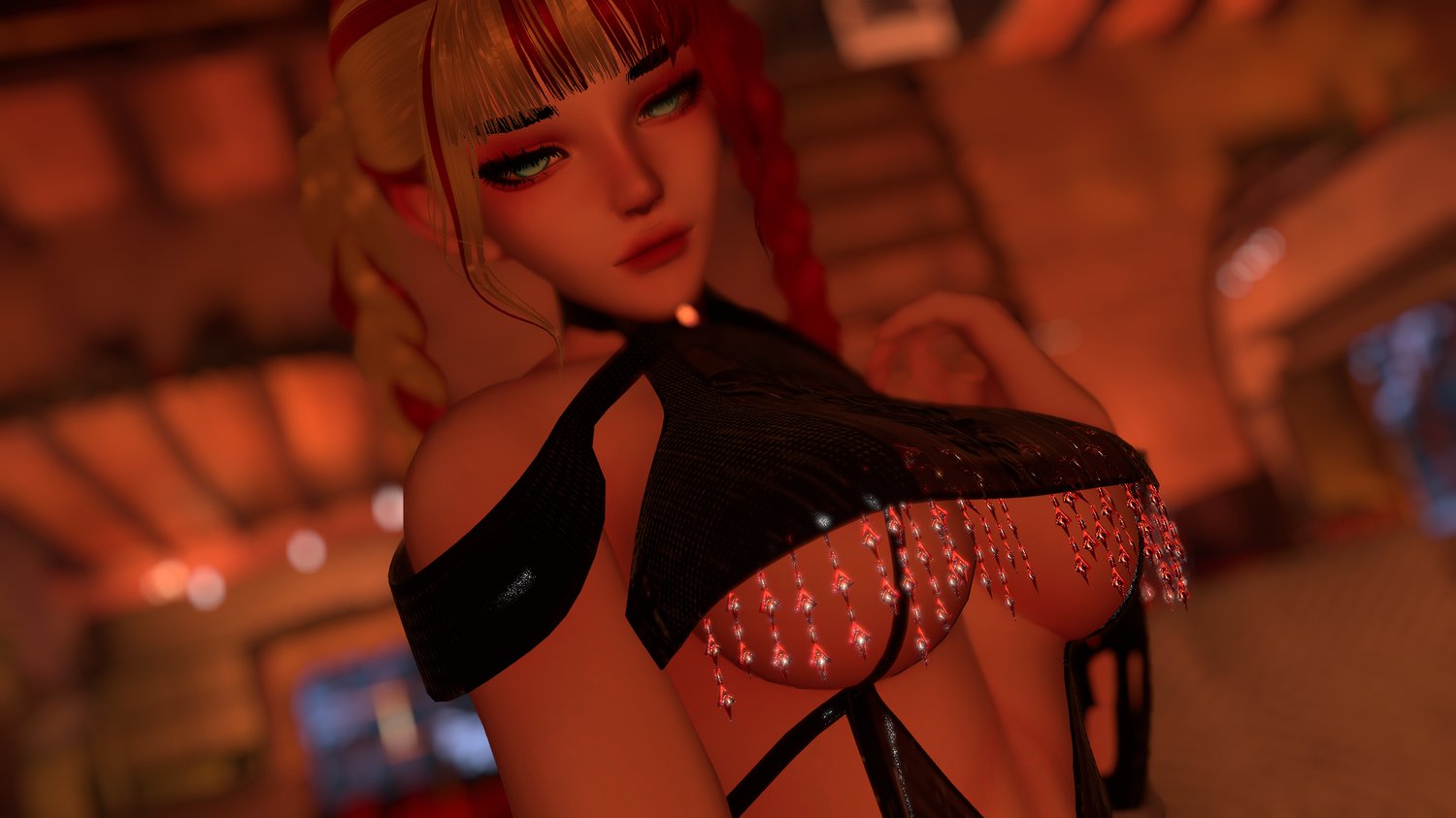 - Jewel top, Sleeves. Thigh Highs, and Heels