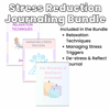 This journaling bundle includes the Relaxation Techniques Journal, De-Stress and Reflect Journal, and Managing Stress Journal.