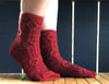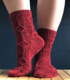 My mother lives in Alaska, on a sweet little homestead, with a big barn, a large garden, and a peaceful pond that is just large enough to skate on in the winter or paddle a canoe on in the summer. I designed these socks for her, in a pattern that evokes the twists of a wrought-iron gate.