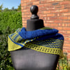 Wrap yourself in a vortex shaped garter stitch shawl in two colours.