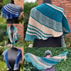Slip stitch patterns, stripes and eyelet lace techniques make this a fun and engaging pattern to knit. The pattern is written, not charted.