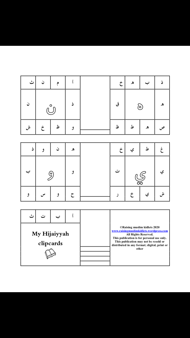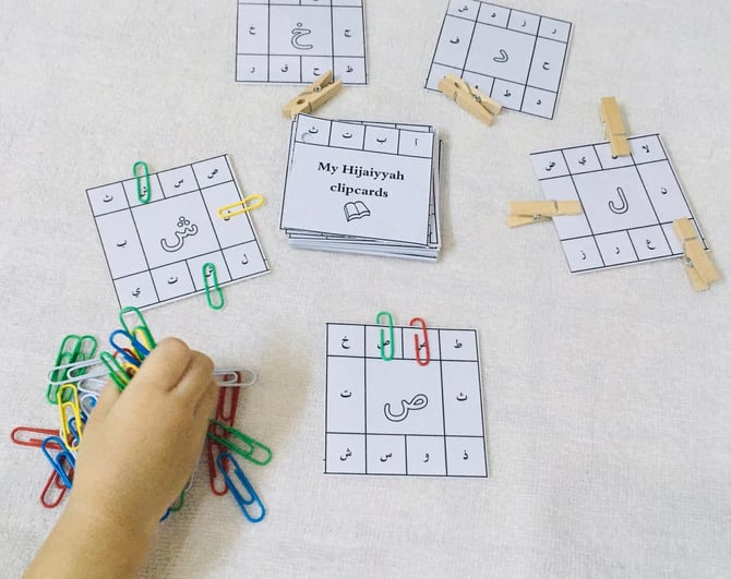 Let your kids learn and identify the arabic hijaiyyah (letters) using these clipcards.