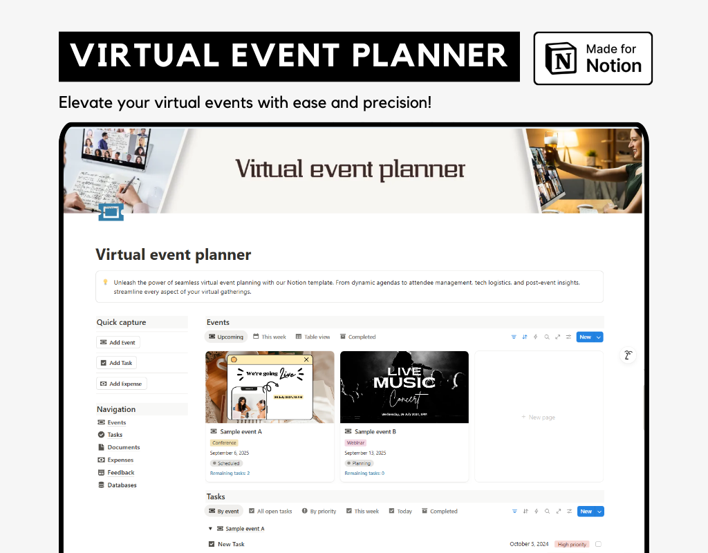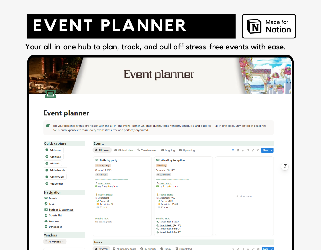 - Tasks – Break down big goals into manageable to-do’s and prioritize effectively.