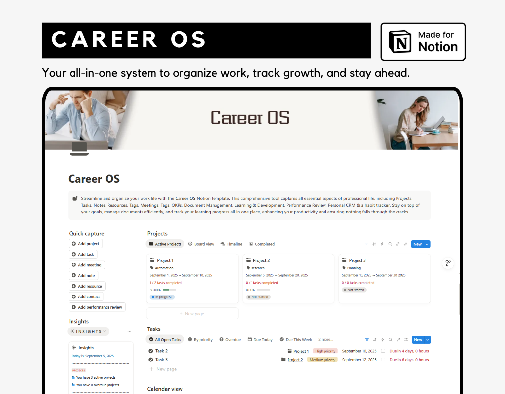 Career OS is your complete workspace in Notion to streamline, organize, and elevate your professional life. Built as an all-in-one system, it centralizes everything you need to stay productive and focused—so you can manage your work with clarity and confidence.