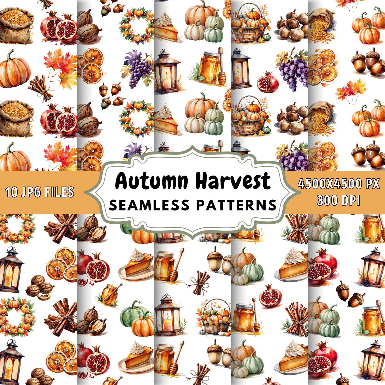 Harvest Season Seamless Patterns - 10 Digital Fall Backgrounds