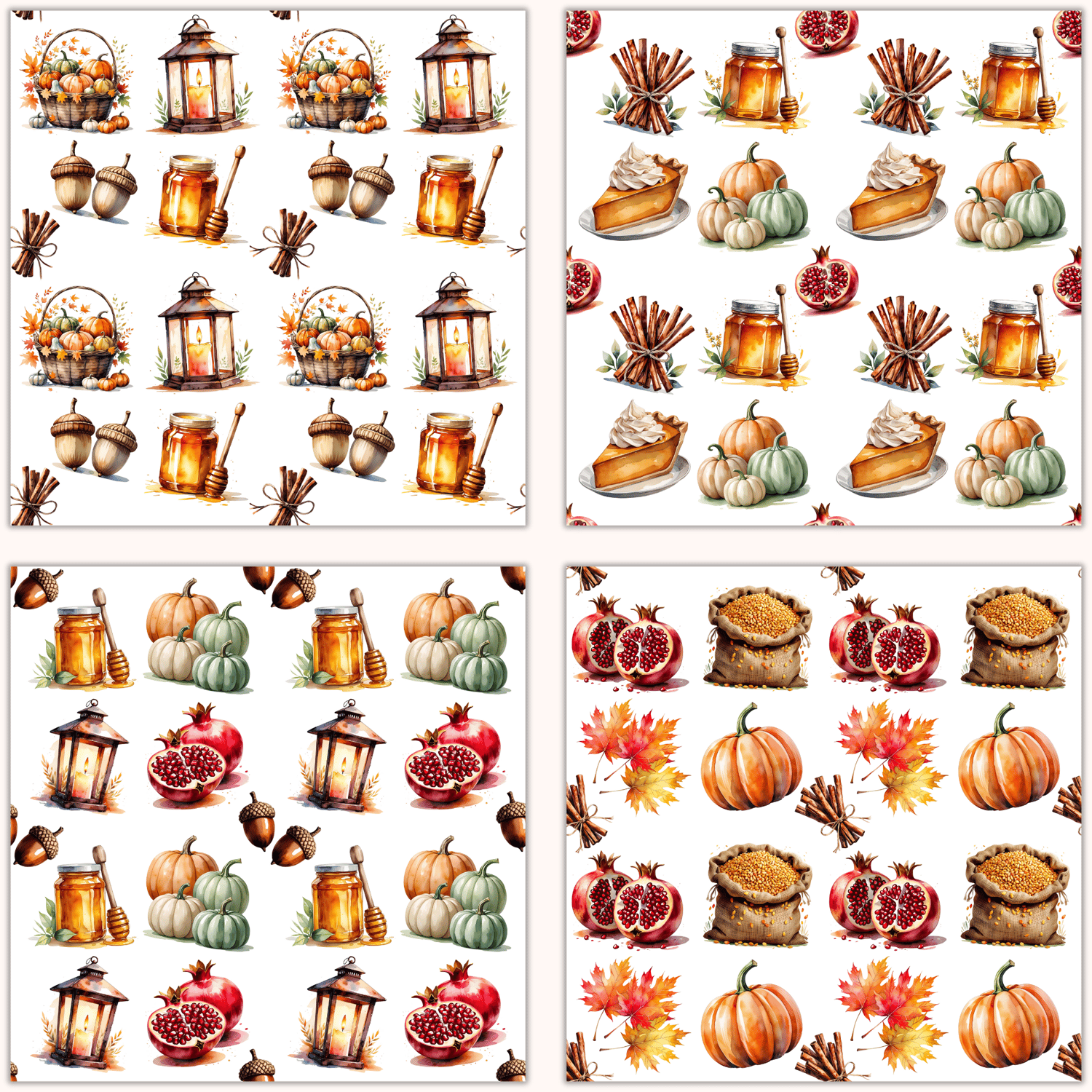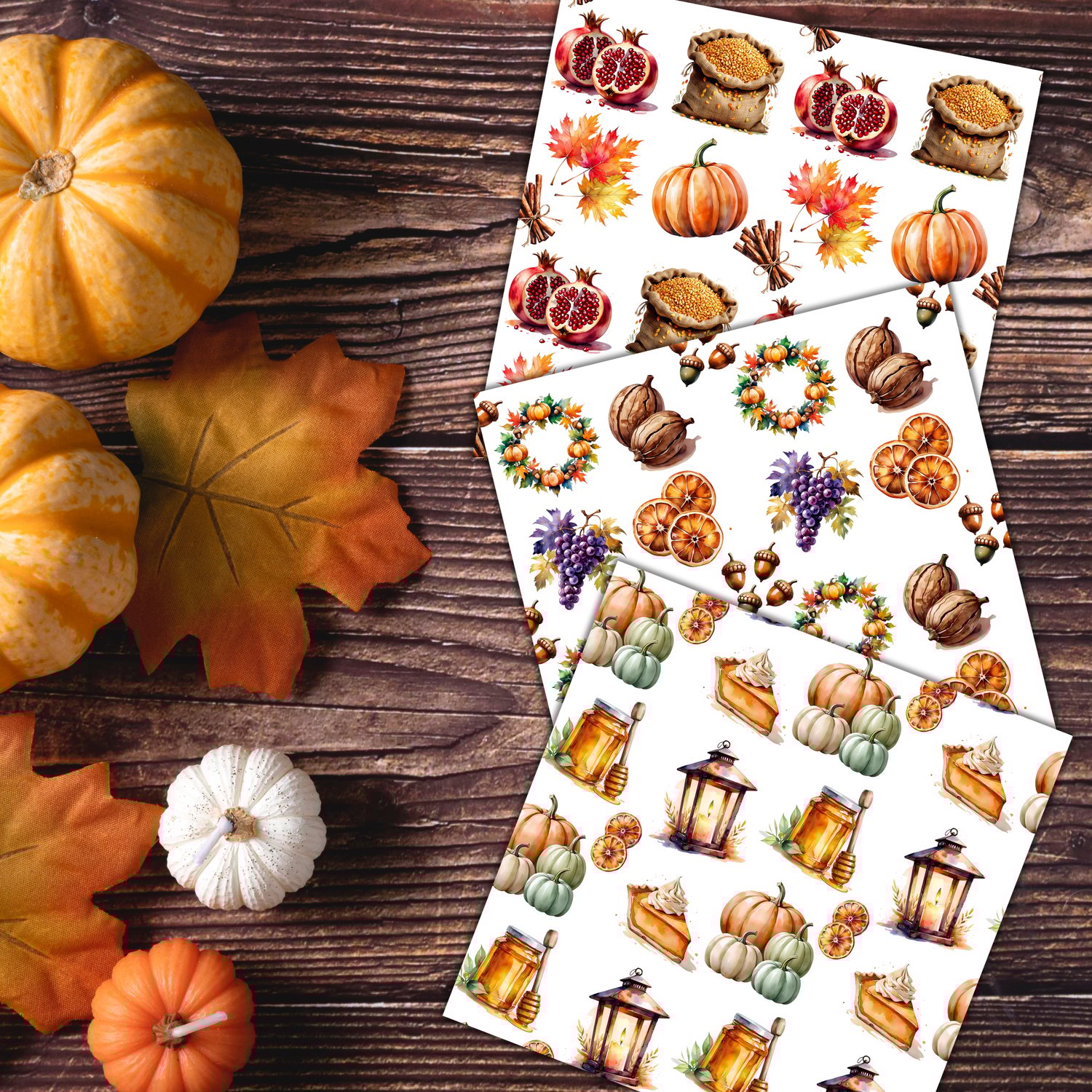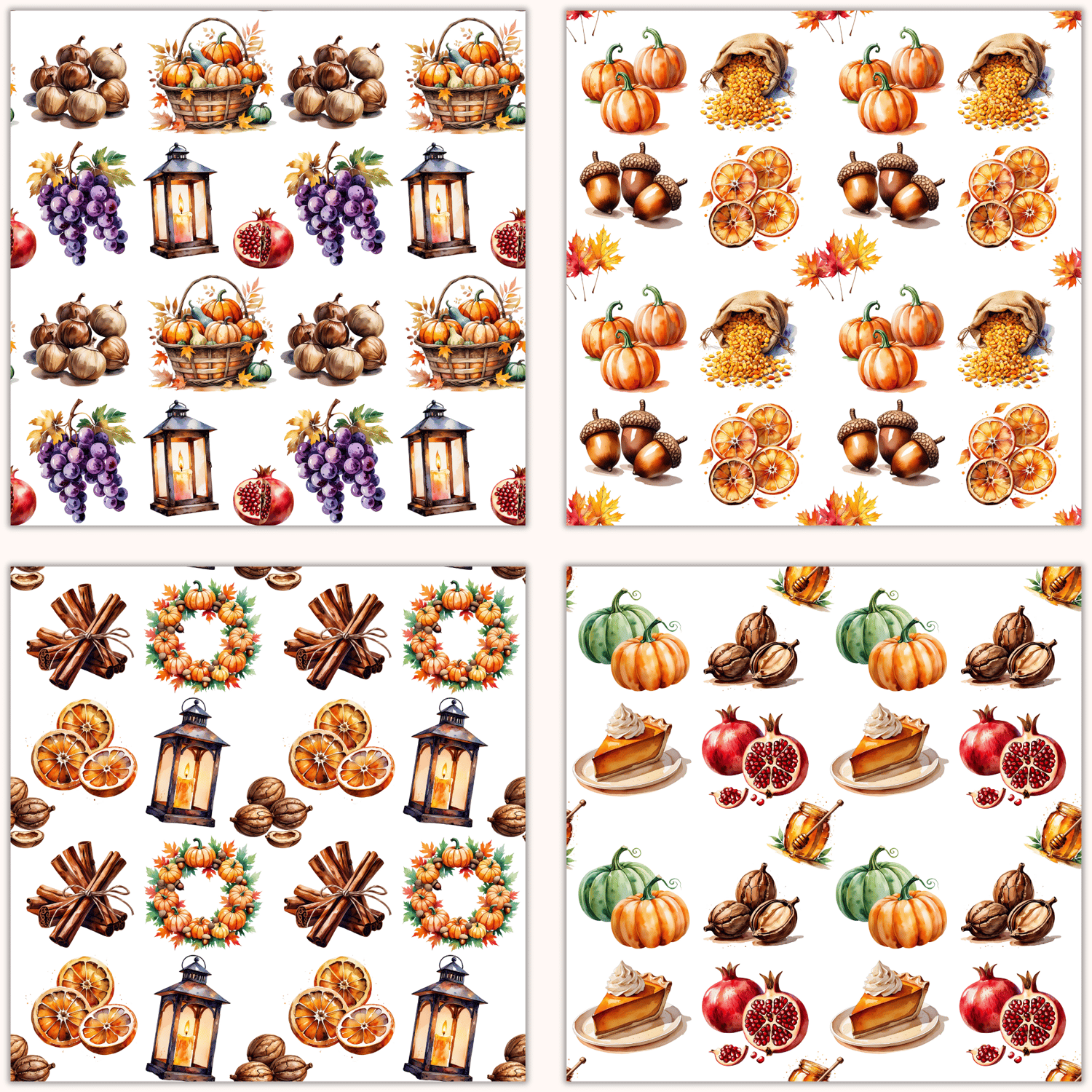 Harvest Season Seamless Patterns - Digital Fall Backgrounds