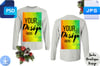 You will receive a front and back Long Sleeve Tee Ash color Mockup, White Background, and Christmas Design Template.