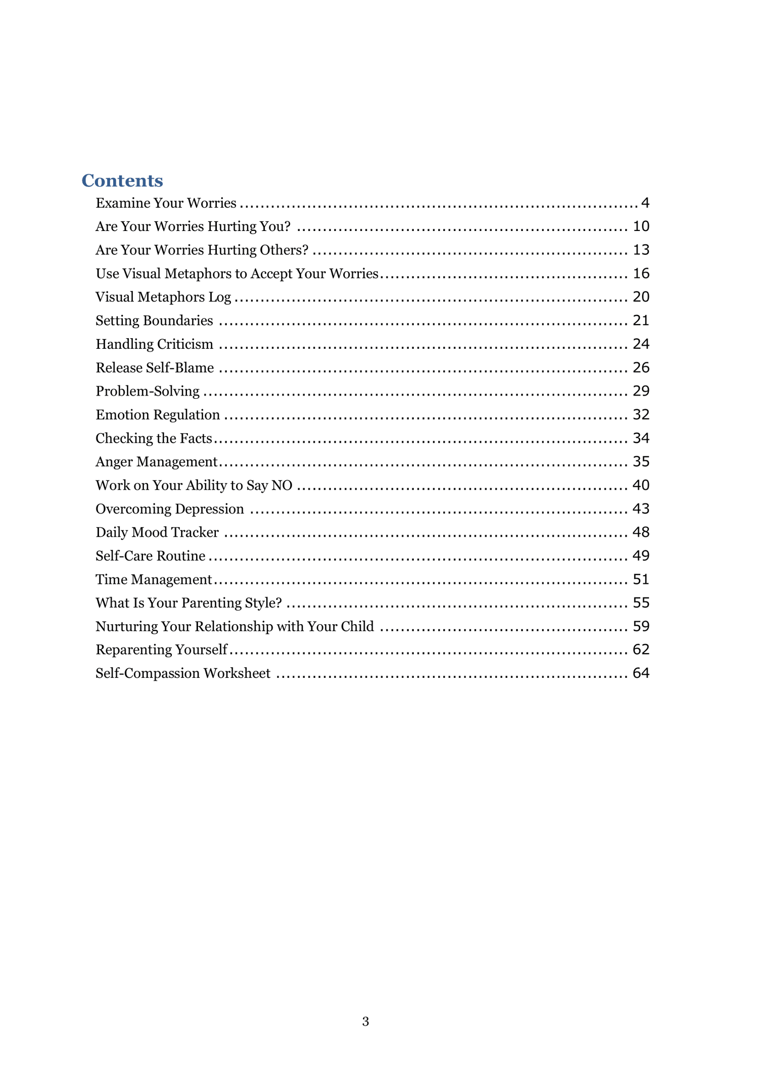 Parents Mental Health Worksheets