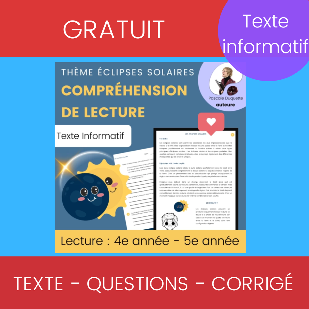 Une activité de compréhension de lecture avec un texte informatif sur les éclipses solaires.