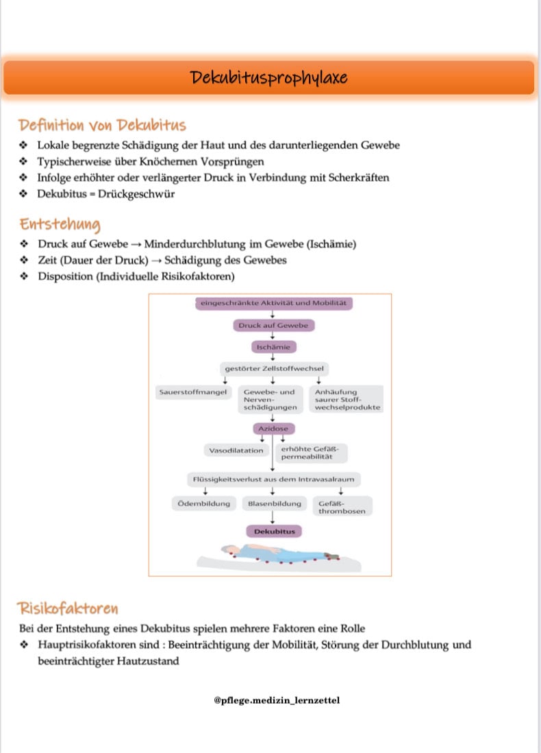 Dieser umfassende Lernzettel bietet eine klare und prägnante Übersicht Dekubitusprophylaxe. Der Lernzettel ist ideal für Schüler, Studenten und Fachkräfte im Gesundheitswesen, die sich fundiert über die Erkrankung informieren möchten
