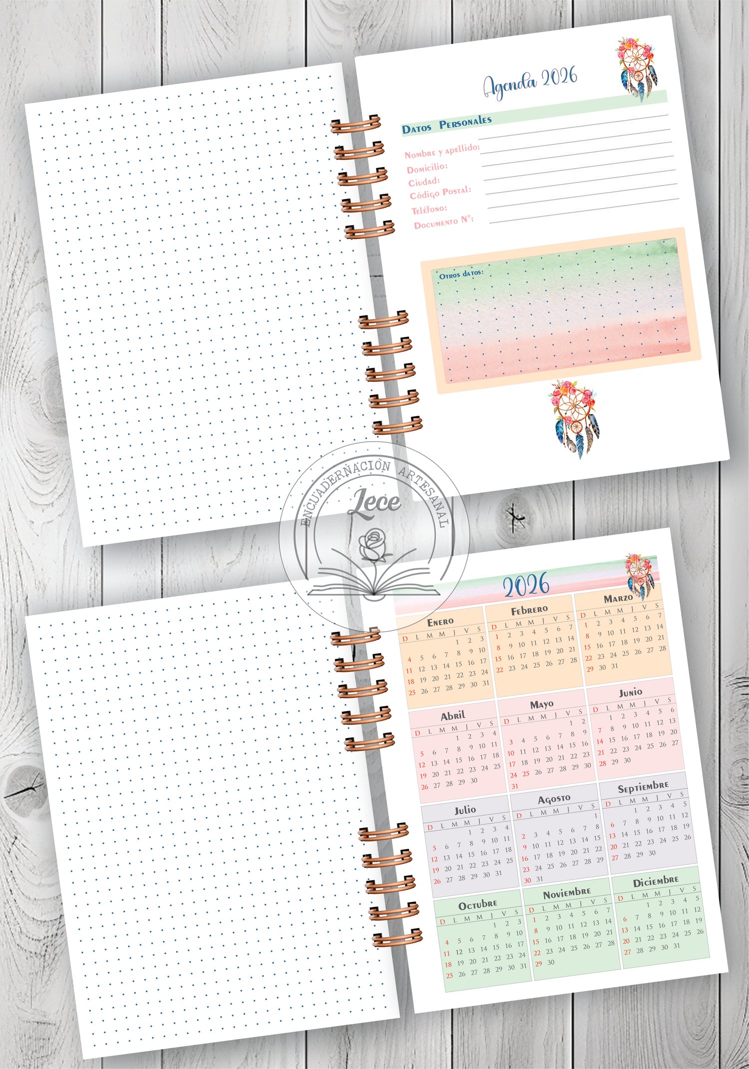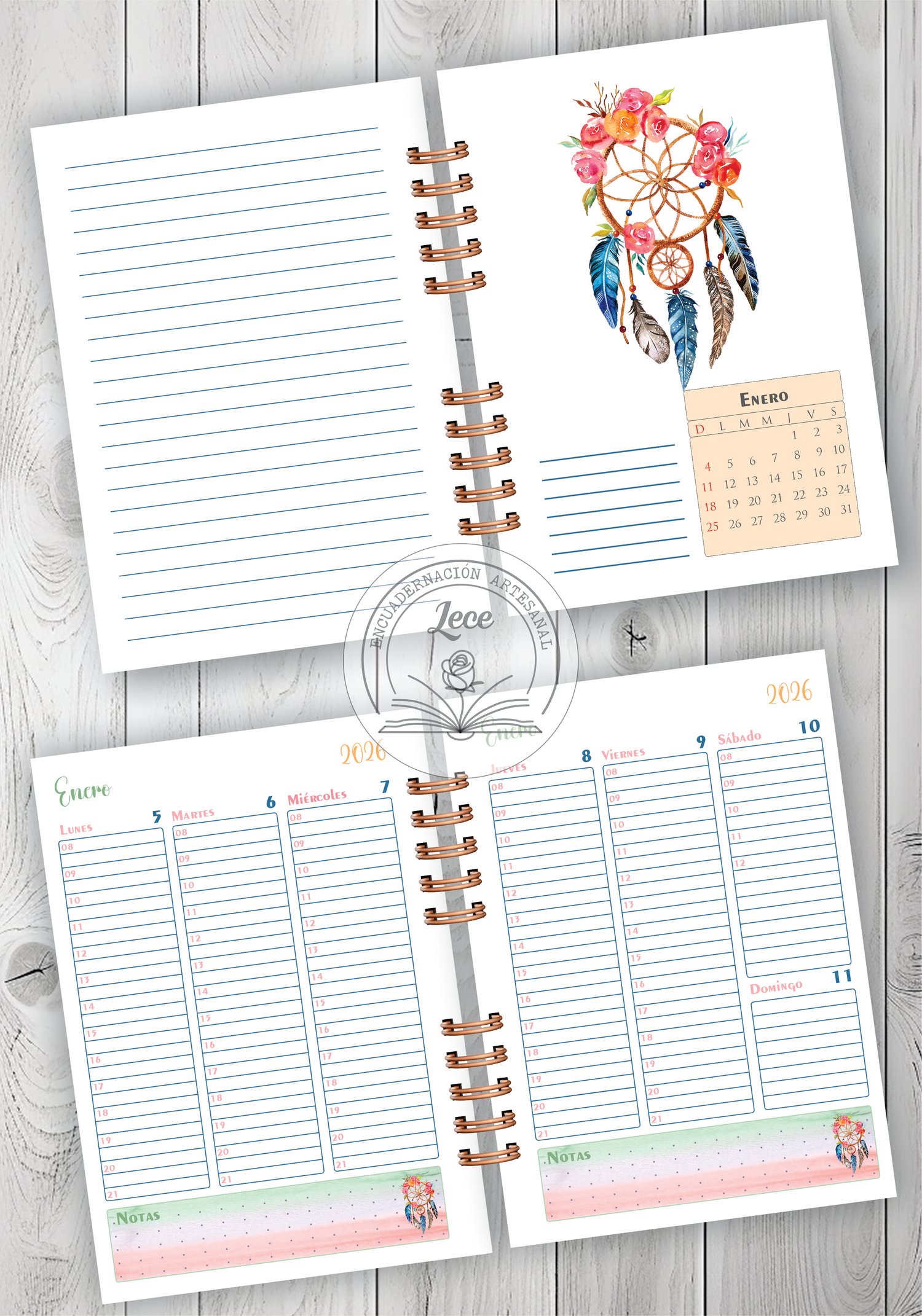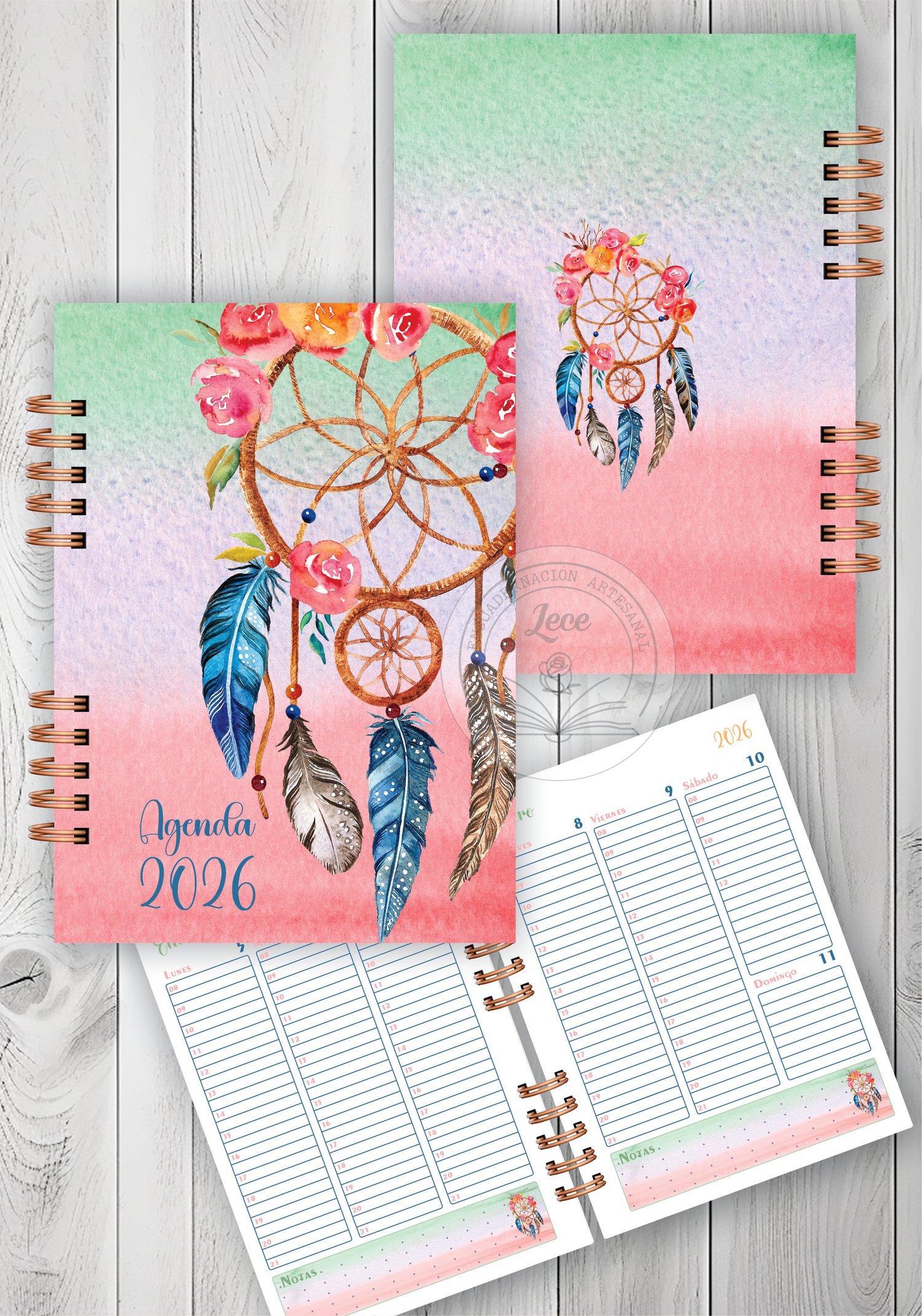 Pack imprimible Agenda 2026 Atrapasueños (Vista semanal)