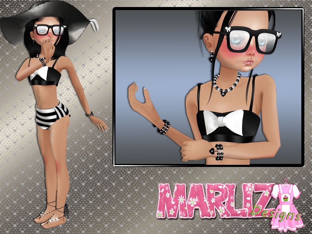 This pack include texture for Kid Bow Sunglasses, Kid summer hat, Kid summer black, Kid jewerly Set Black and Kid Swimsuit