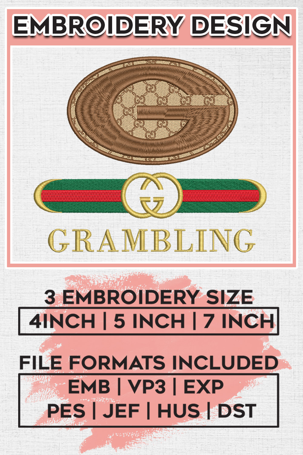 Gu.cci Grambling Tigers Football Team Embroidery FIles, NCAA Tigers Team Embroidery Designs, 3 sizes, Machine embroidery Digital Download
