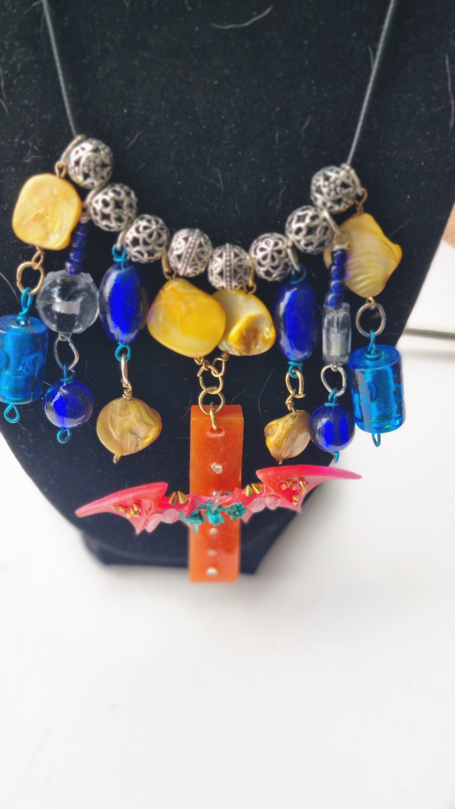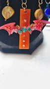 And then… the pièce de résistance: an orange pendant kissed with subtle pink bat wings—delicate but defiant, like a whispered warning in a velvet dusk. A glowing ember of chaos wrapped in softness.