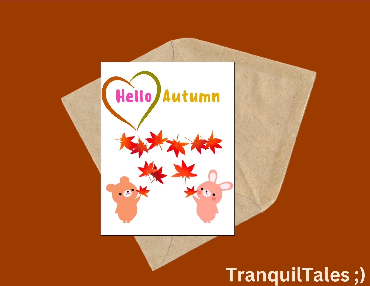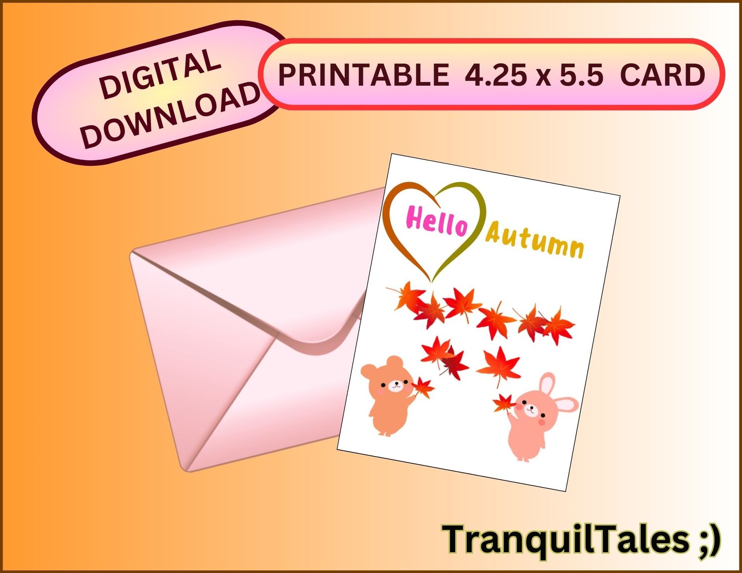 HELLO AUTUMN CARD - 4.25" x 5.5" - PDF FILE - AUTUMN & FALL - THANKSGIVING SEASON