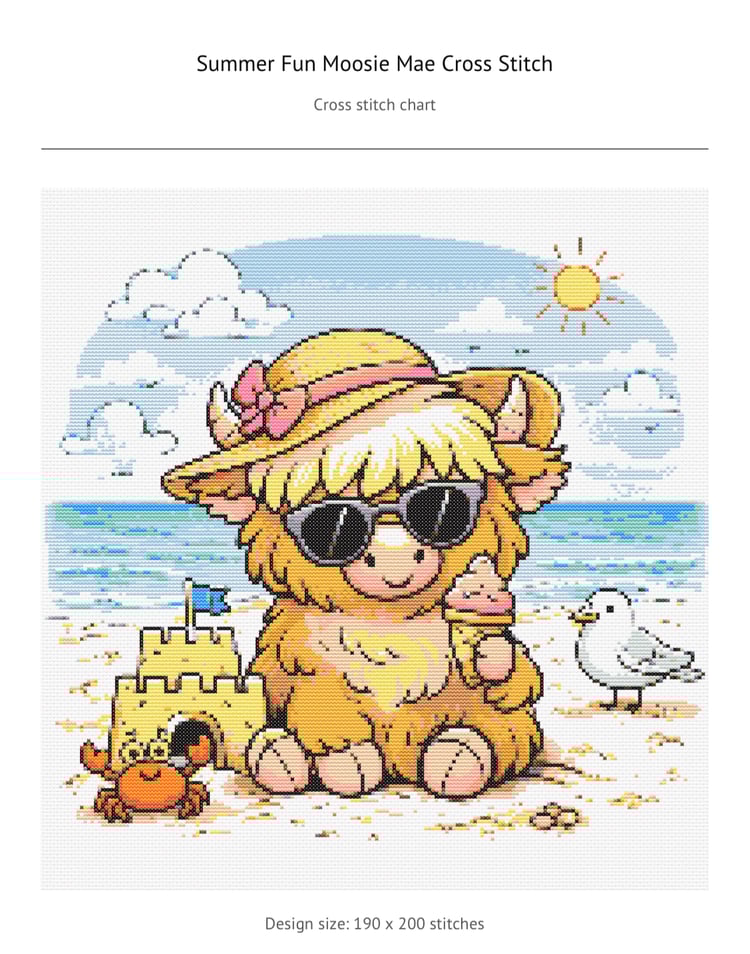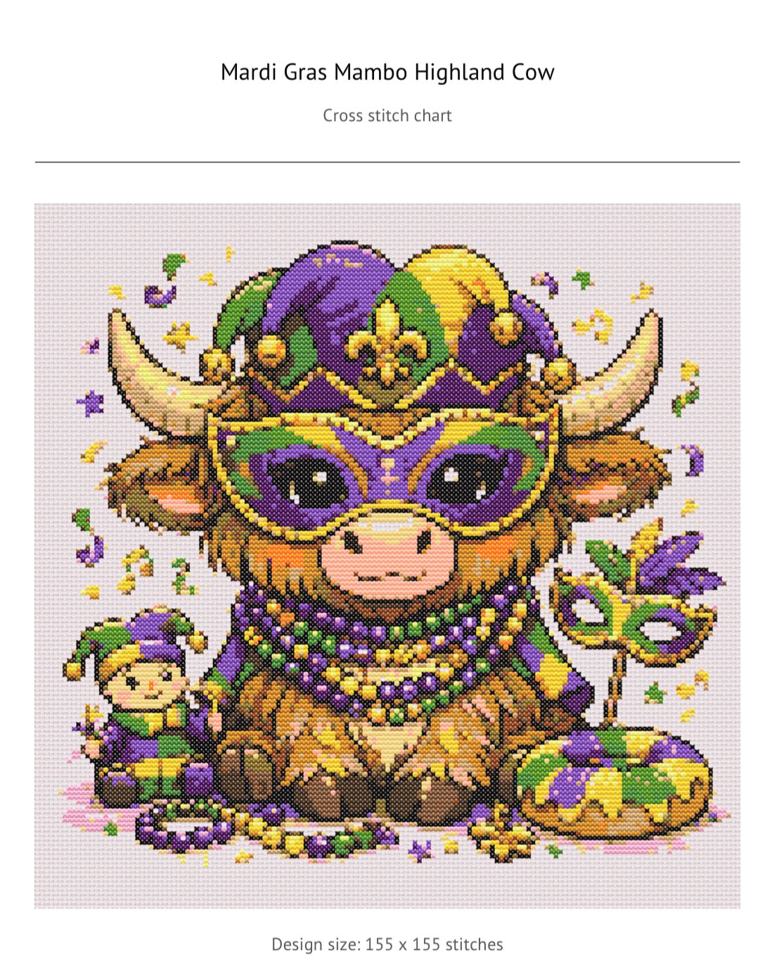 Mardi Gras Mambo - Bella Moo the Highland Cow— CROSS-STITCH PATTERN