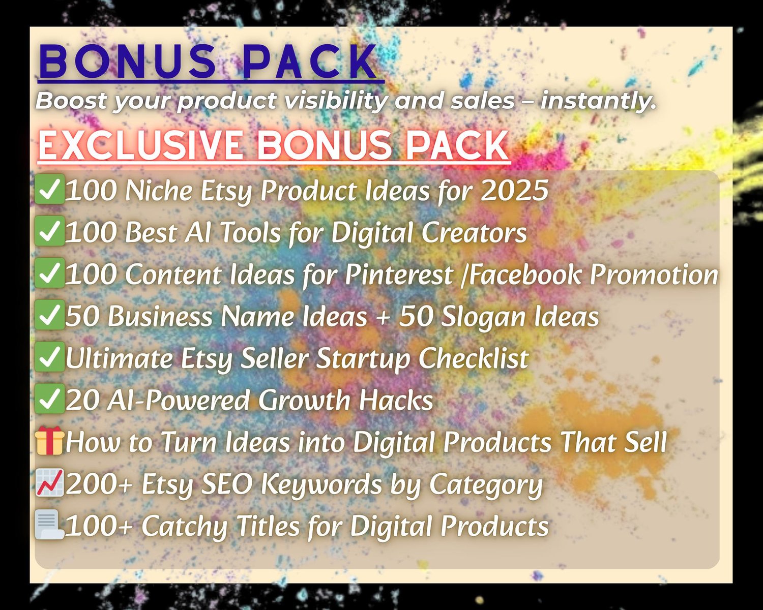 π Bonus included: SEO keywords, content ideas, business names, Pinterest growth hacks & more β carefully crafted to help you stand out on Etsy in 2025.