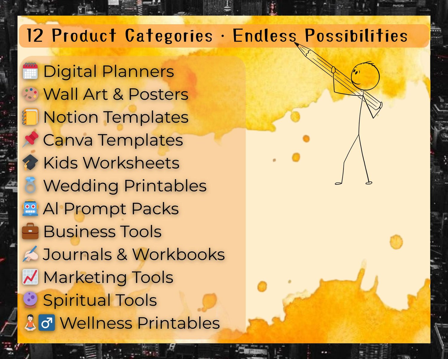 This 120,000 Digital Product Ideas Mega Bundle is your ultimate creative goldmine β covering everything from planners, wall art, workbooks, templates, AI tools, marketing resources and more.