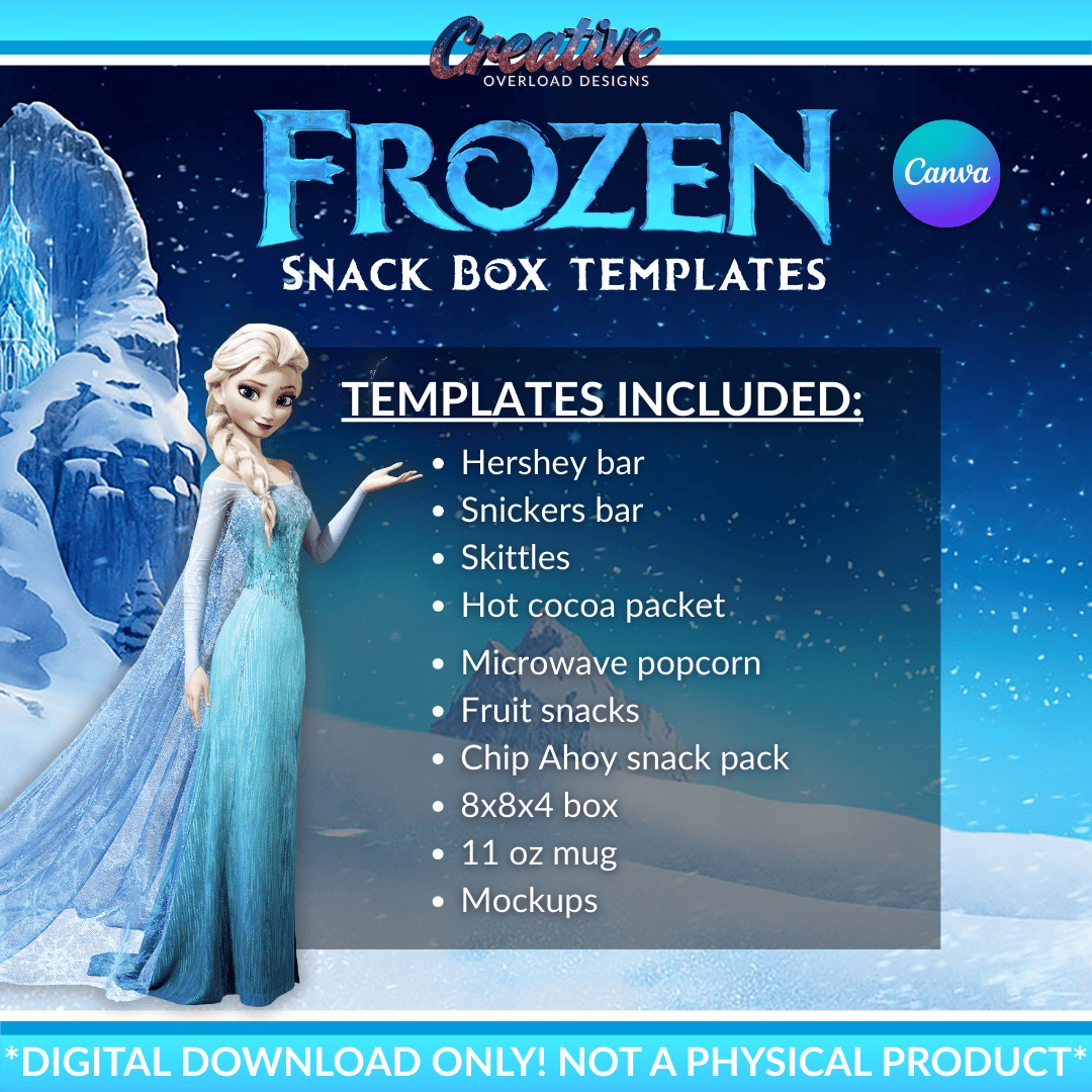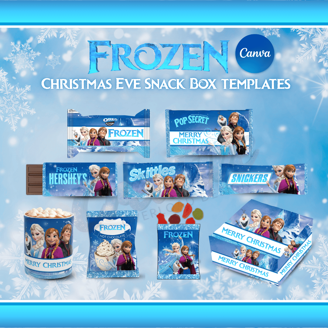 Perfect for Frozen-themed family nights, classroom treats, holiday parties, and kids who adore Anna, Elsa, and Olaf, these templates are fully editable in Canva—no design experience needed. Simply customize, download, print, and assemble.