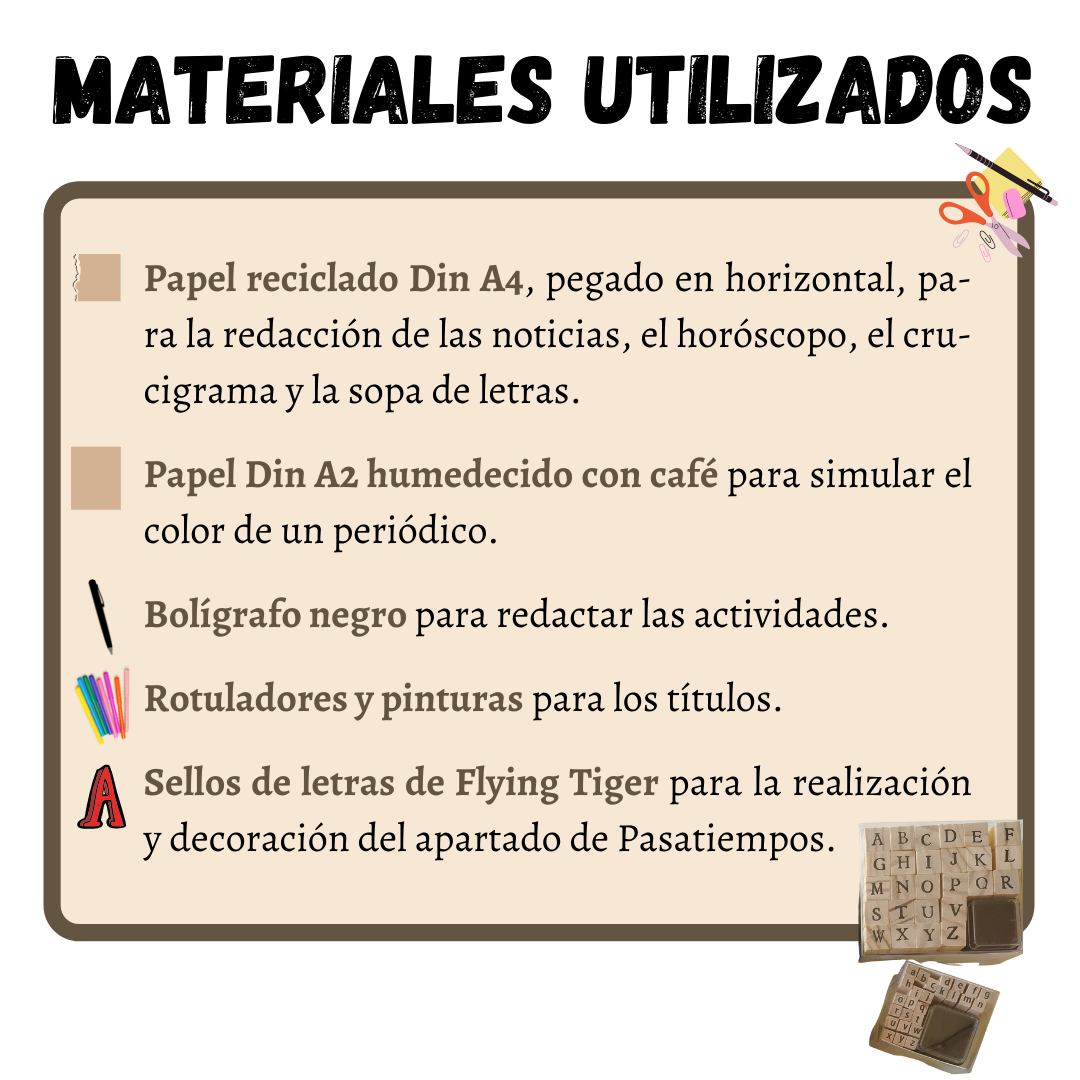¡Hola, lazarillos y lazarillas! En 1.º ESO hemos creado un periódico de aula como proyecto de la segunda evaluación. Para hacerlo, necesitamos varias sesiones en las que escogimos el nombre y el precio del periódico, las secciones en las que se dividiría nuestro periódico y, posteriormente, empezamos con la redacción y el diseño.