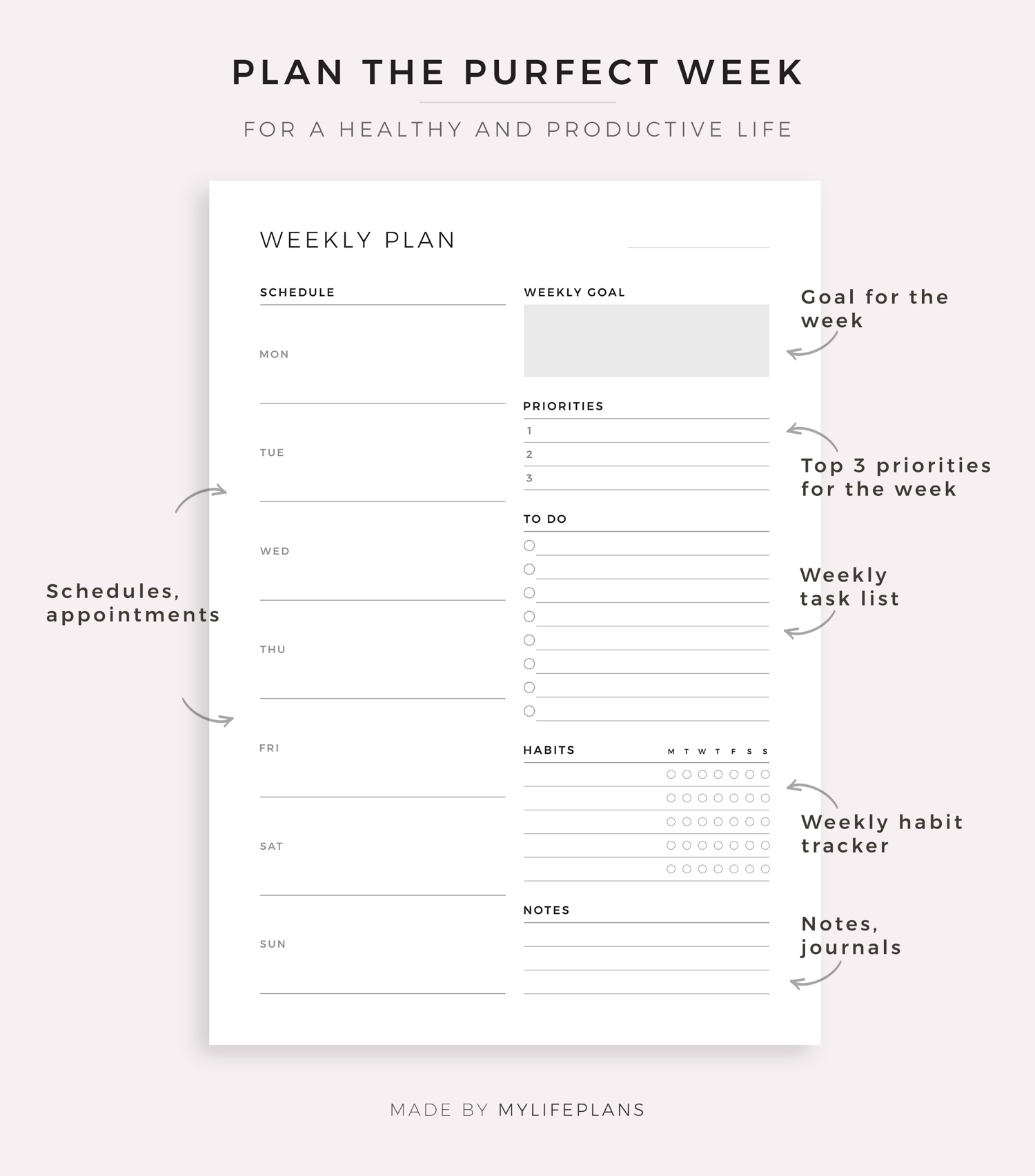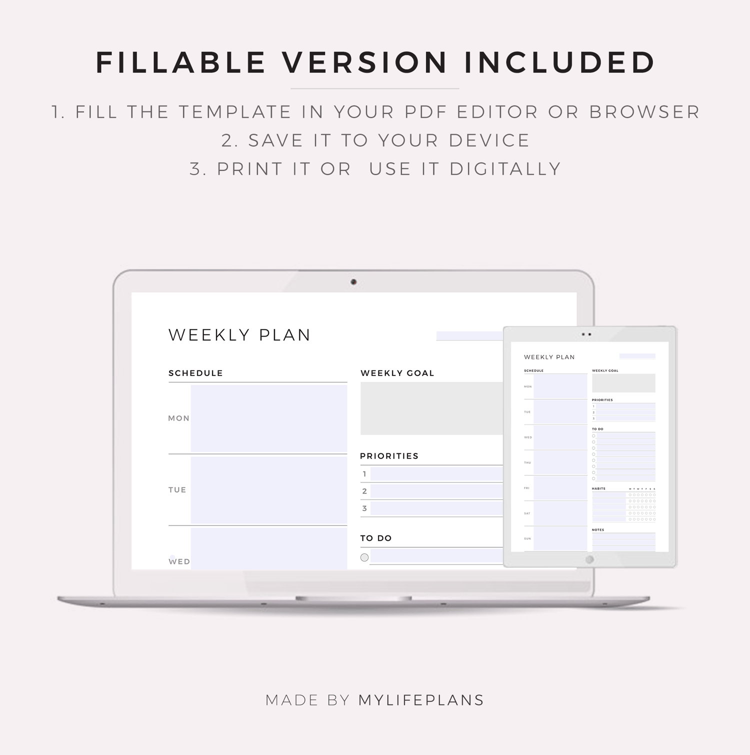 This is a printable weekly goal planner — just download, print, and start using it right away.