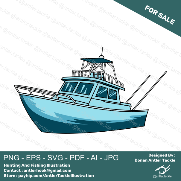 Boat Fish Fishing Logo Exclusive License Designed By Donan Antler Tackle
