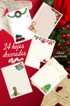 Este pack contiene 24 hojas decoradas de navidad para cartas o para agendas digitales en tamaño A4 (21cm x 29,7cm).