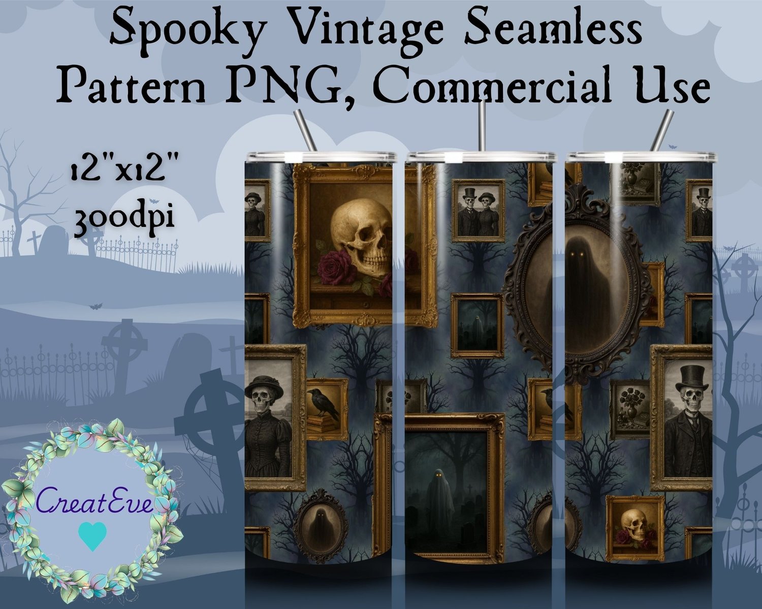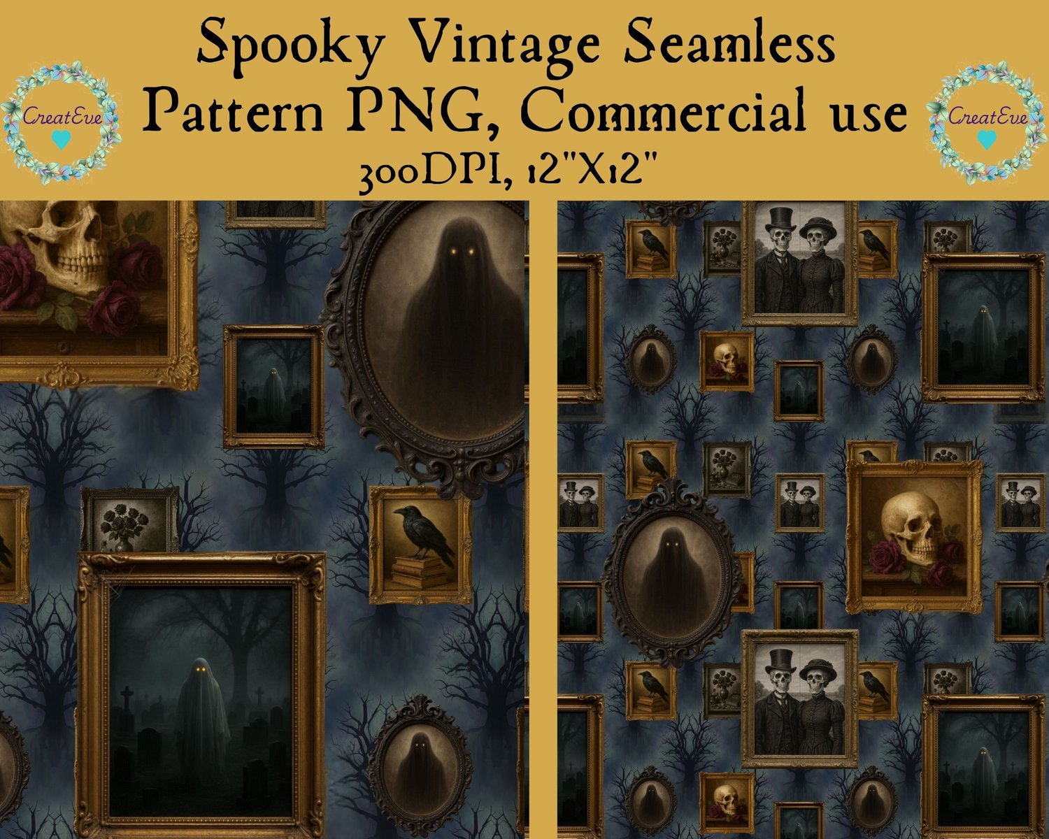 Spooky Vintage Seamless Pattern PNG, 12"x12", 300dpi Commercial Use