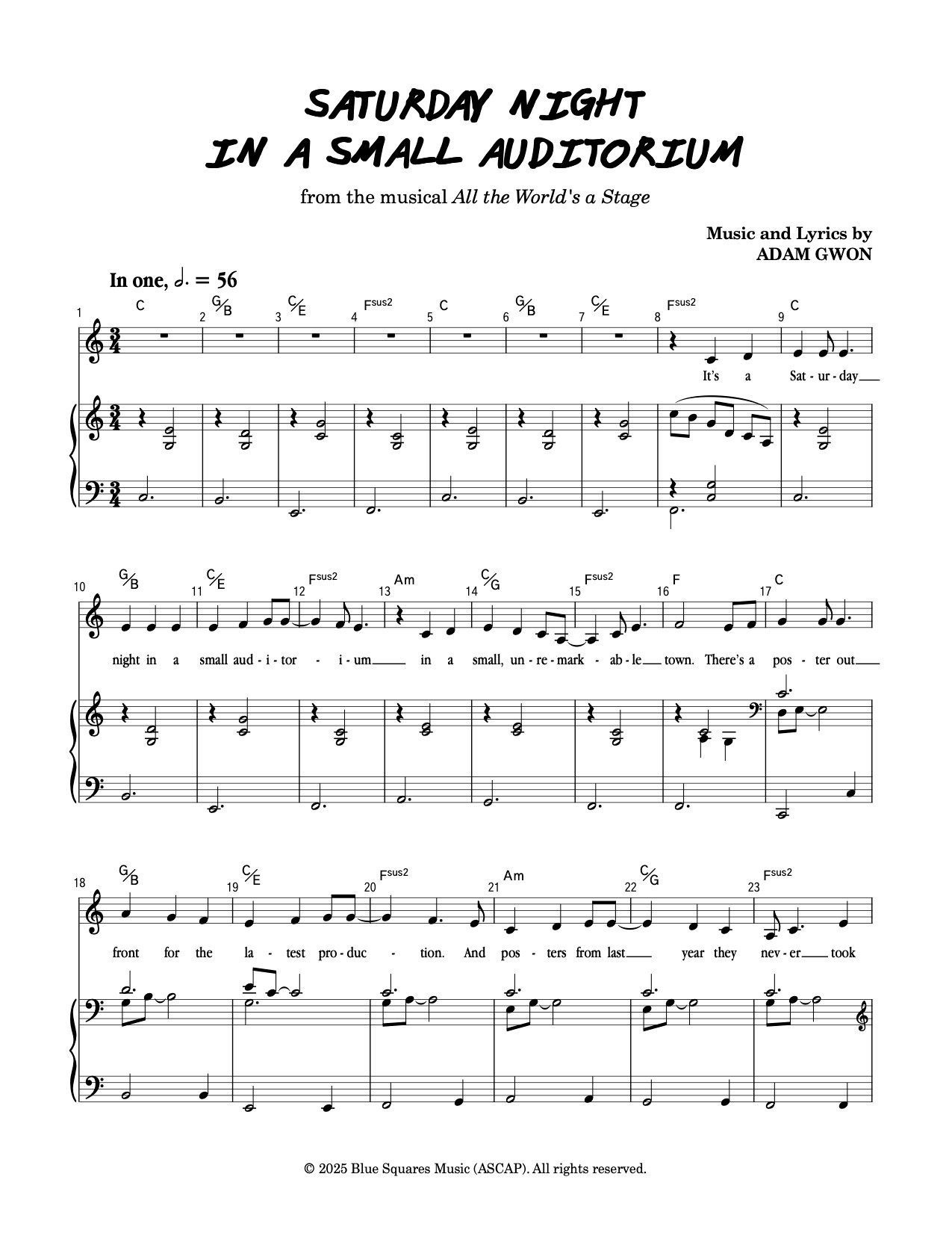 Piano/Vocal sheet music for "Saturday Night in a Small Auditorium" from All the World's a Stage.
