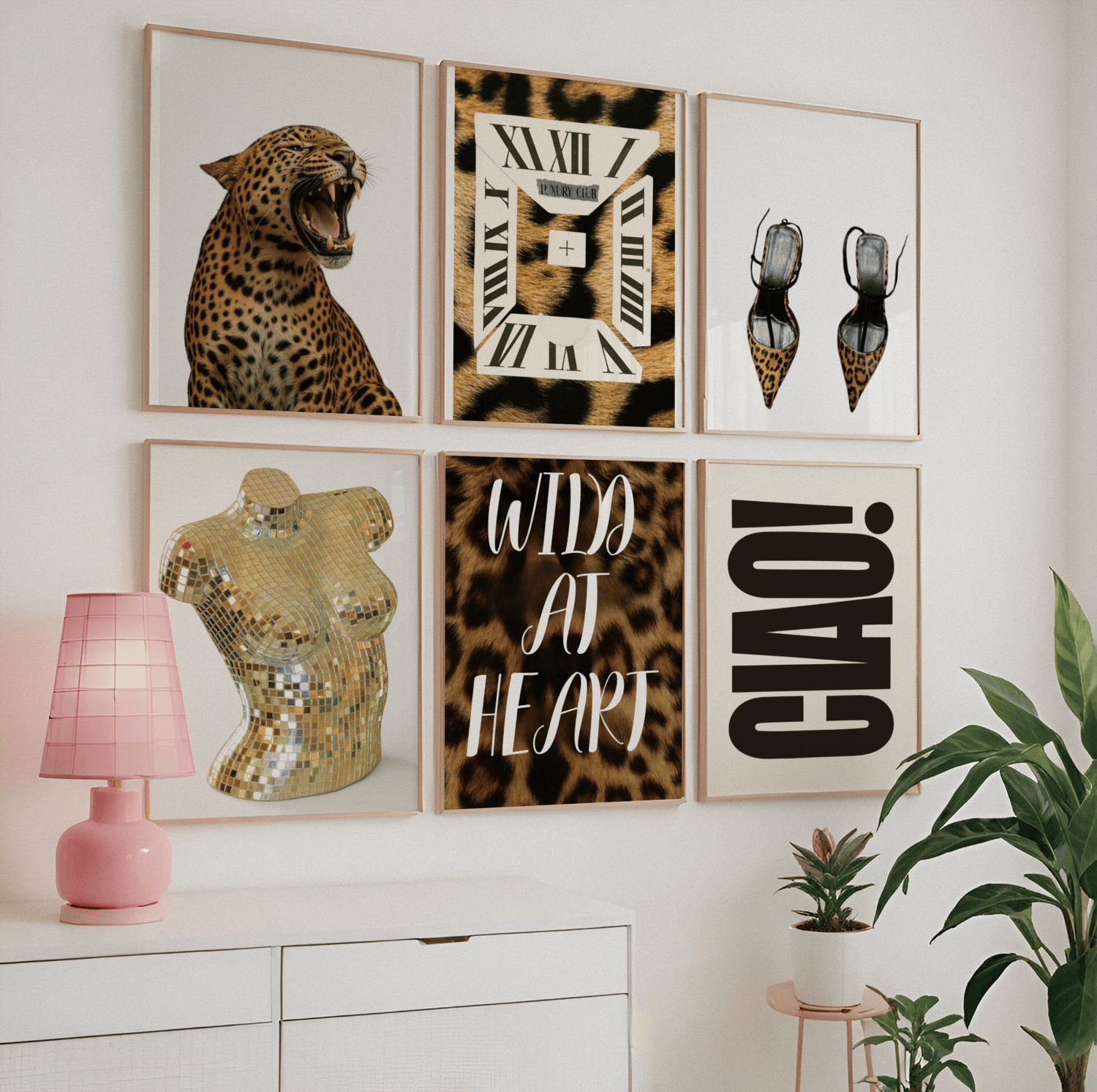 This collection brings together fierce leopard imagery, fashion heels, sculptural art, bold typography, and modern graphic elements — making it ideal for fashion lovers, creative spaces, and aesthetic apartments.