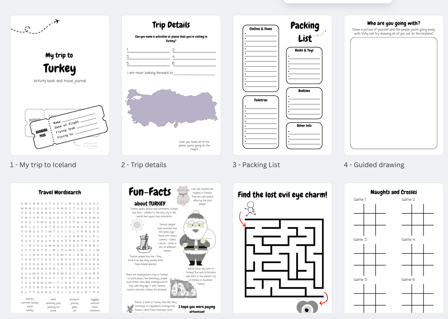 "My Trip to Turkey" isn’t just about keeping kids busy – it’s a practical guide too! Packed with kid-friendly travel tips, space to fill out their own itinerary, a packing checklist, flight-friendly games and even airport bingo, it helps children feel involved and prepared for the journey ahead.