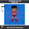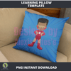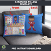 Superhero Boy Learning Pillow Template | Two-Sided Educational Design | Customizable PNG for Kids Products | Commercial License