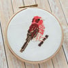 A counted cross stitch pattern of a purple finch, the state bird of New Hampshire. Fits into a 4-inch/10cm hoop.