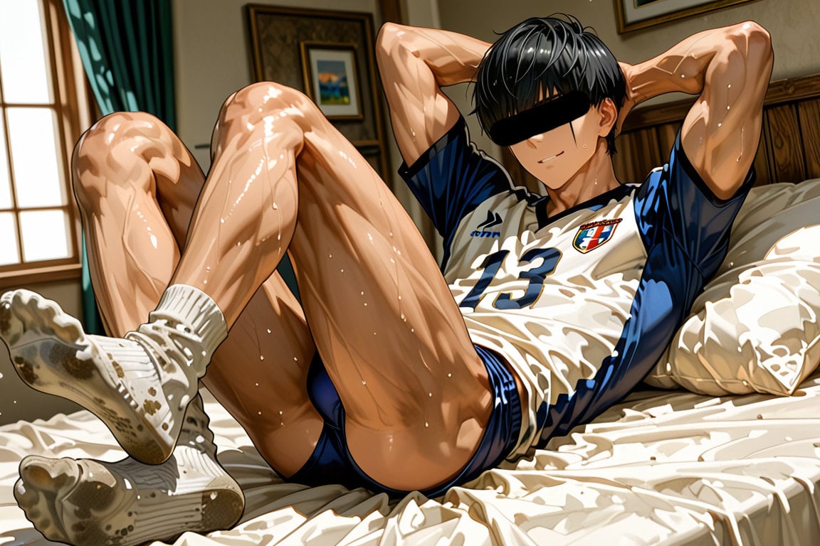 サッカーユニフォームをモチーフに、スポーツ男性の日常やキャラクターの魅力を存分に表現しました。