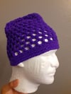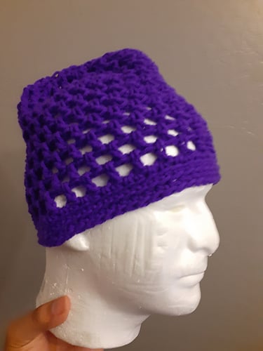 Hazy Canyon Sky Cap is a lightweight mesh beanie inspired by the soft purple hues that settle over Glen Canyon at dusk. Designed to capture that hazy, open-sky feeling, this cap features an airy stitch pattern that balances breathability with cozy coverage. Made with worsted-weight yarn and a J/10 (6.0 mm) hook, it works up quickly while maintaining a relaxed drape and subtle texture. The open mesh construction makes it perfect for transitional weather, adding a touch of color and calm desert-inspired beauty to everyday wear.